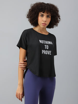 | MKH Nothing To Prove Women Black Dri-Fit Relaxed Fit T-Shirt | Rs. 499.00 |