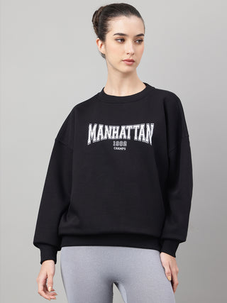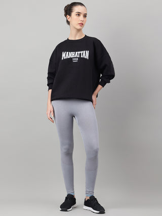 MKH Slate Blue Women Drop Shoulder Comfort Fit Cotton Fleece Sweatshirt