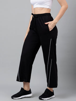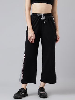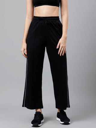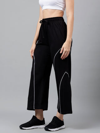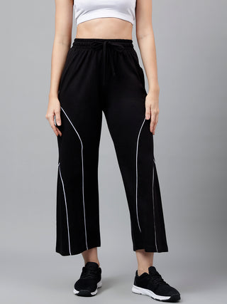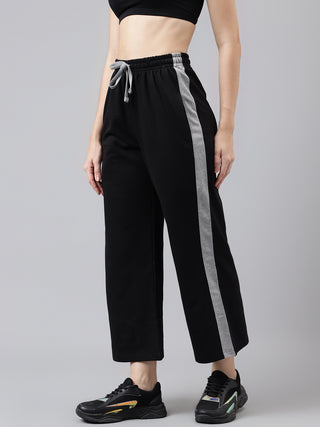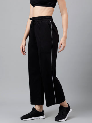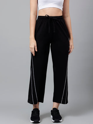 Women Black Mid-Rise Relaxed-Fit Track Pants