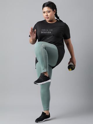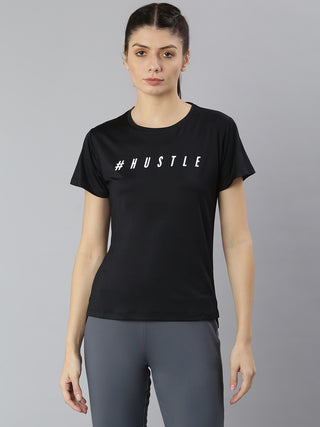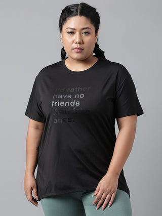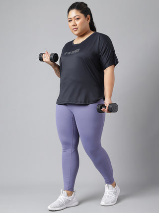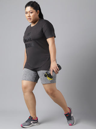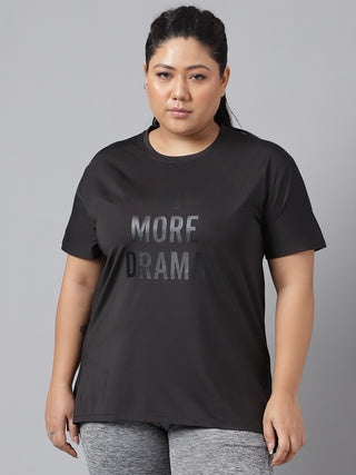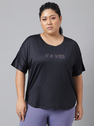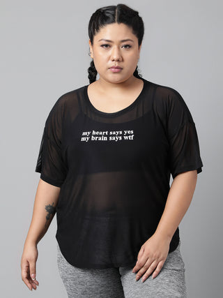 MKH Women Curve Athleisure Mesh Black Plus Size T-Shirt