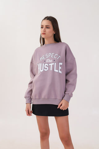 MKH Lavender Women Relaxed Fit Cotton Fleece Sweatshirt