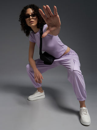 MKH Lavender Women Urban Loose Cotton Fleece Sweatshirt