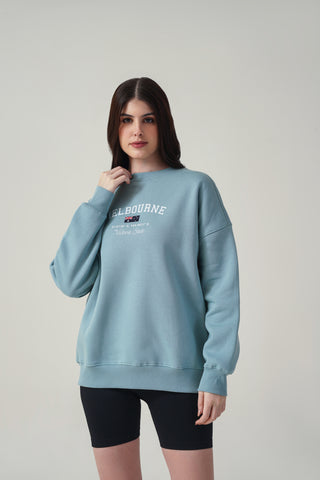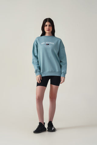 MKH Teal Blue Women Boxy Cut Cotton Fleece Sweatshirt