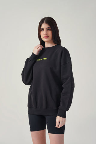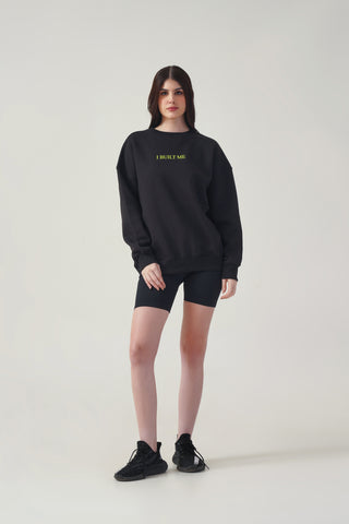 MKH Black Women Loose Cut Cotton Fleece Sweatshirt