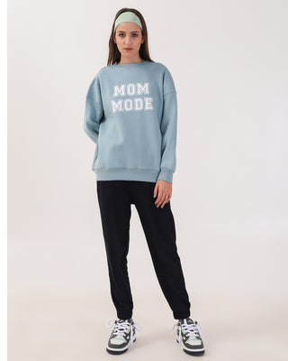 MKH Blue Women Flowy Fit Cotton Fleece Sweatshirt