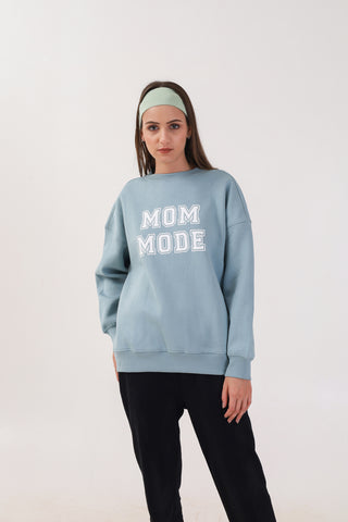 MKH Blue Women Relaxed Streetwear Cotton Fleece Sweatshirt