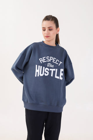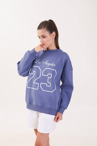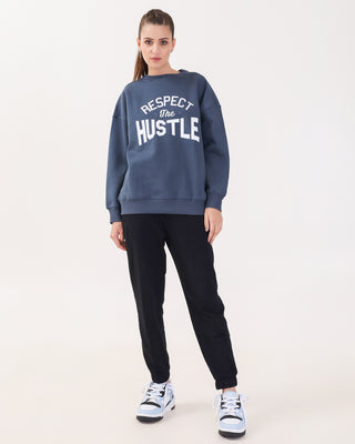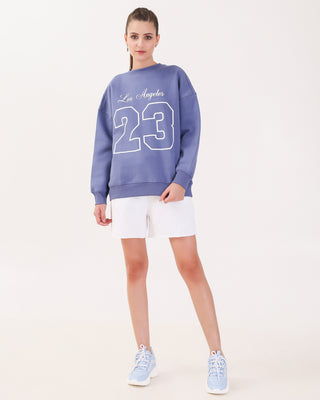 MKH Blue Women Generous Fit Cotton Fleece Sweatshirt
