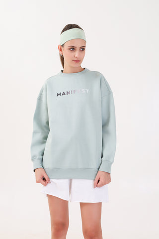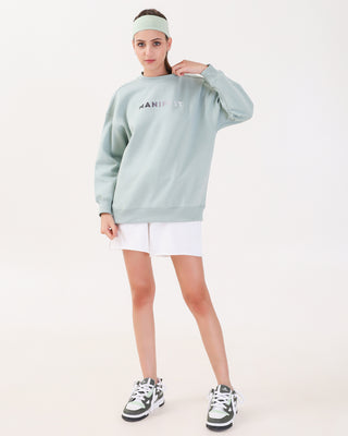 MKH Sea Green Women Drop Shoulder Cotton Fleece Sweatshirt