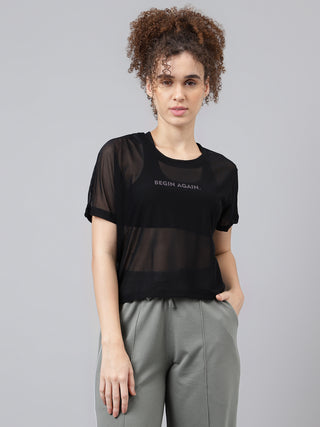 MKH Womens Mesh Crop T Shirt Breathable Gymwear
