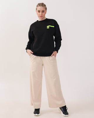 MKH Black Women Oversized Comfort Cotton Fleece Sweatshirt