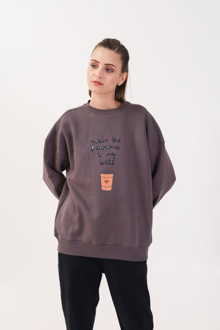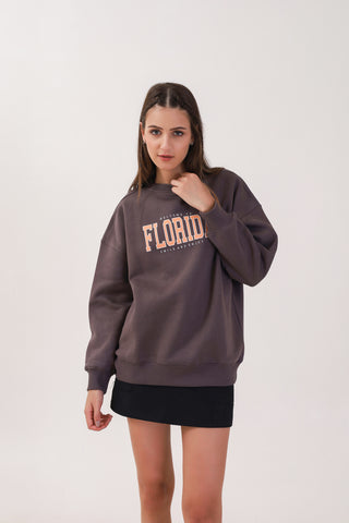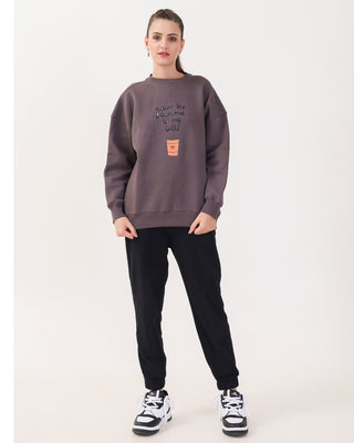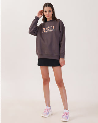 MKH Grey Women Slouchy Cotton Fleece Sweatshirt