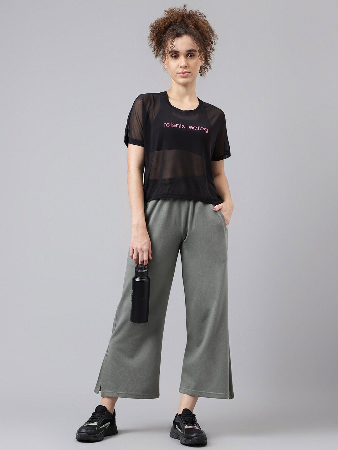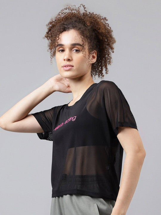 MKH Black Womens Mesh Crop T Shirt Breathable Gymwear
