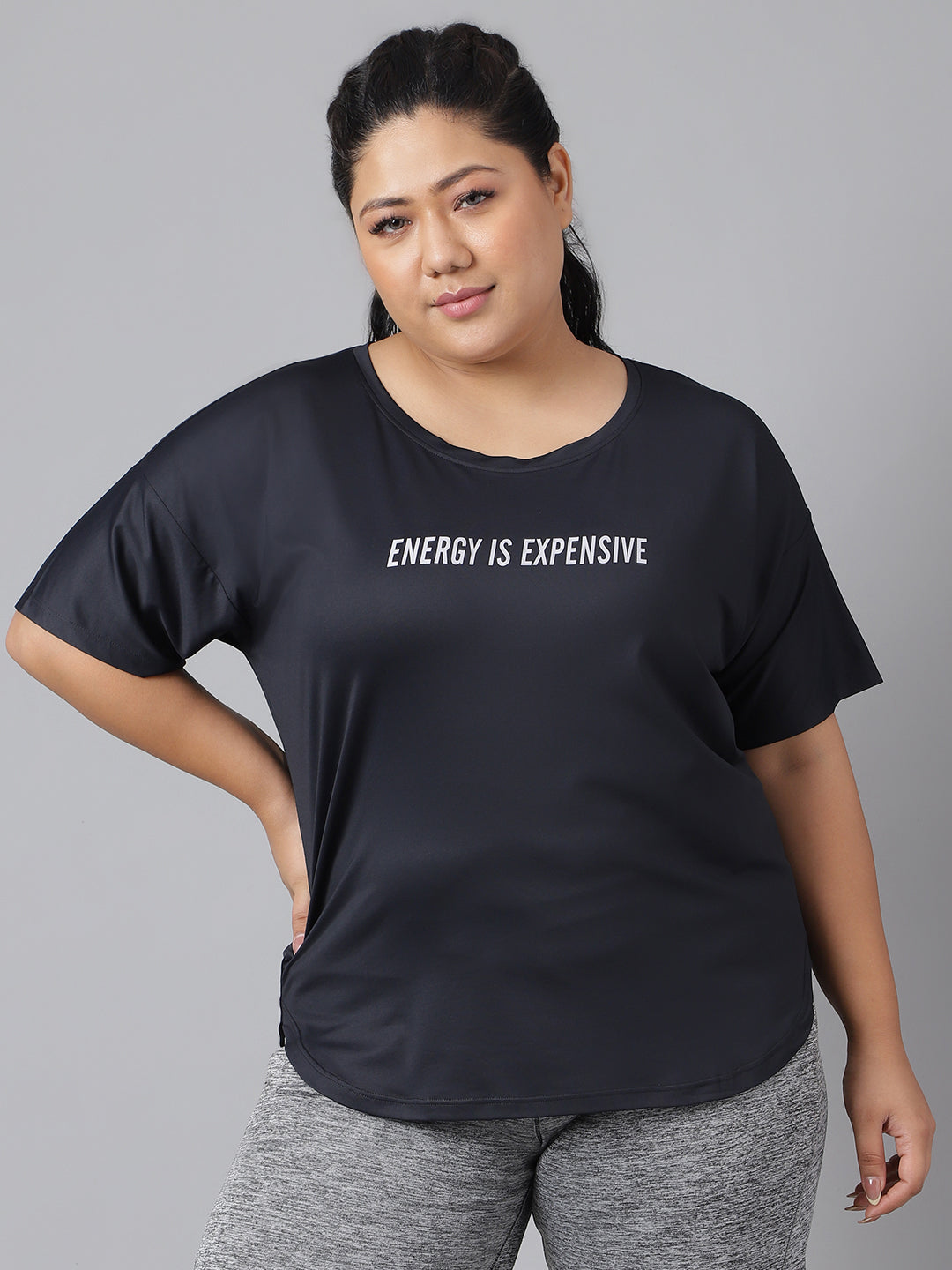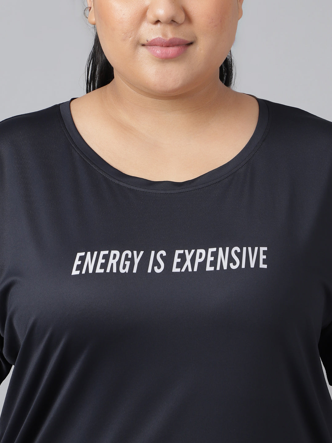 MKH Women Black Energy Is Expensive Dri-Fit Relaxed Fit T-Shirt
