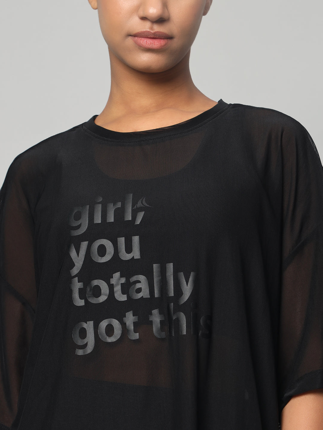 MKH Black Mesh Loose Fit T Shirt Womens Athleisure