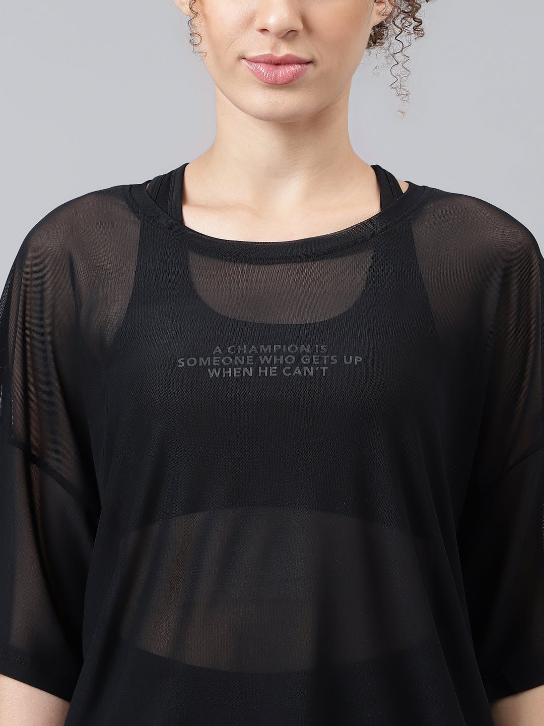 • Sheer Layering Piece for a chic athleisure look