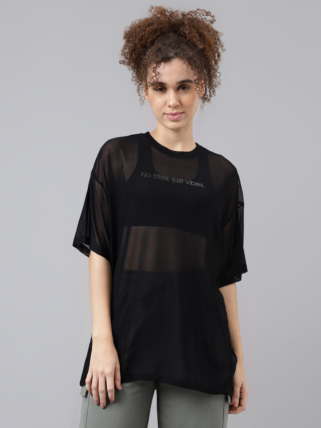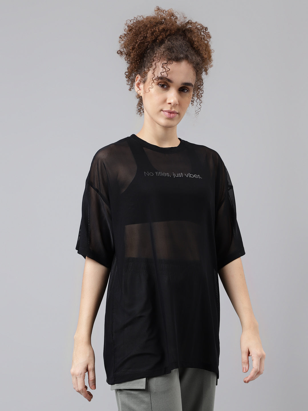 Easy. Airy. Effortless. The MKH Oversized Mesh T-Shirt is designed for a relaxed fit that drapes naturally over the body, giving you room to breathe and move freely. Crafted from lightweight sheer mesh, it delivers maximum airflow during workouts and layers seamlessly over your sports bra or tank. The oversized silhouette and drop-shoulder sleeves make it the perfect blend of comfort and style — a go-to piece for training, lounging, or heading out after class.