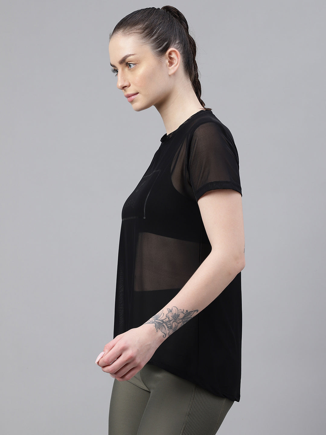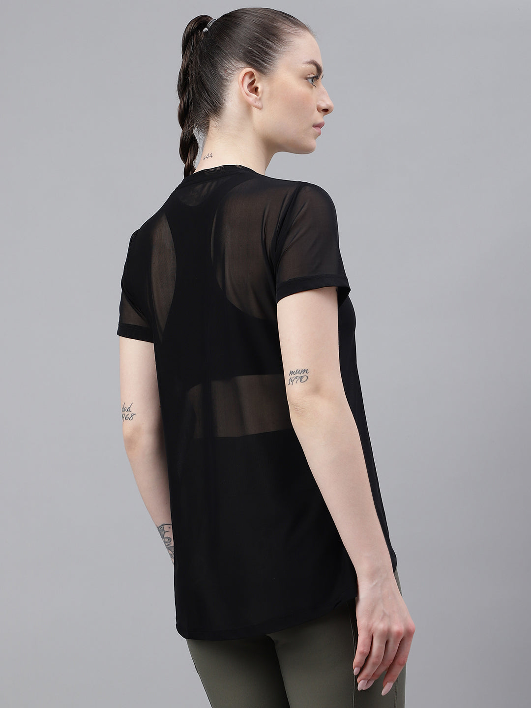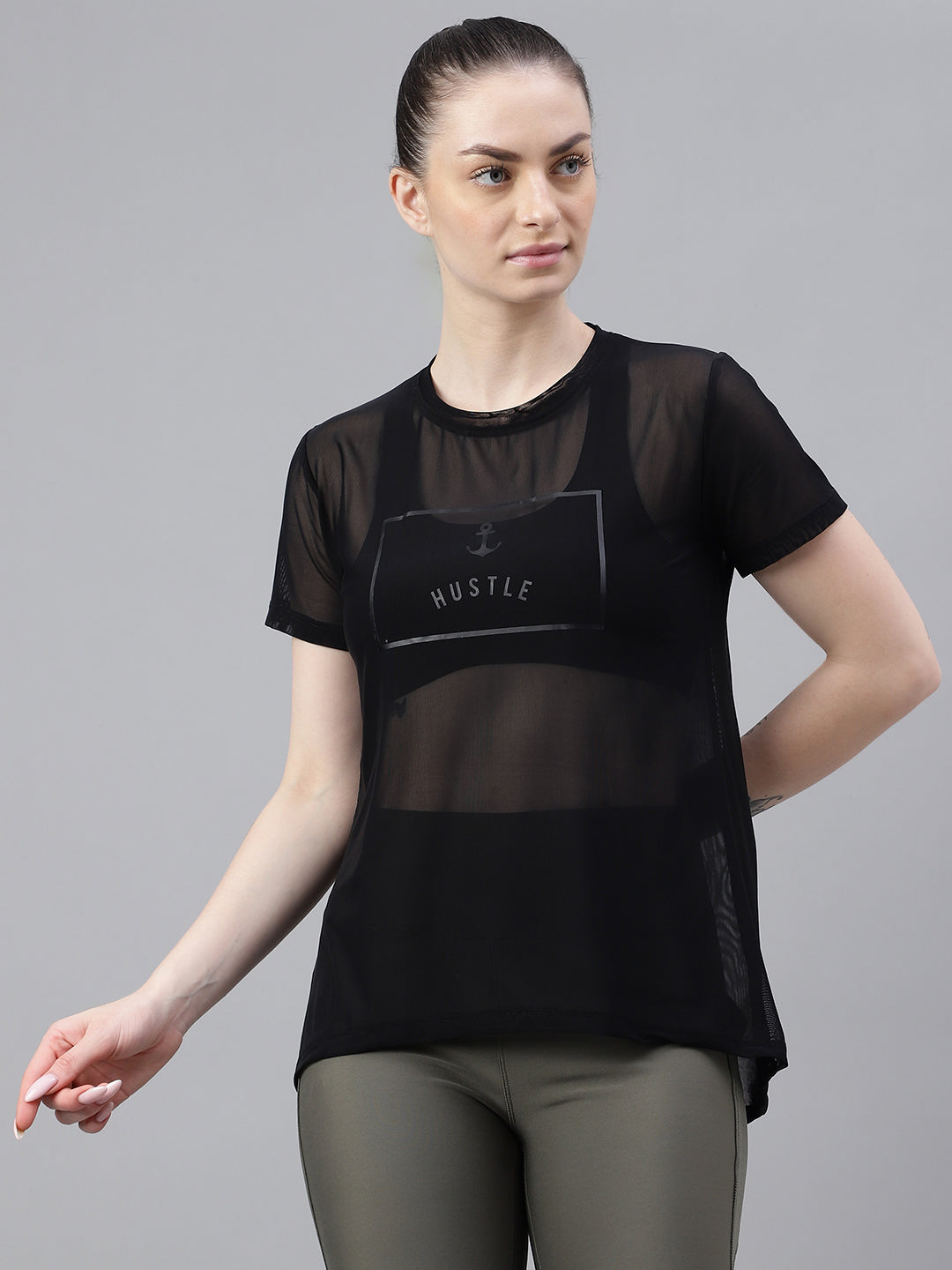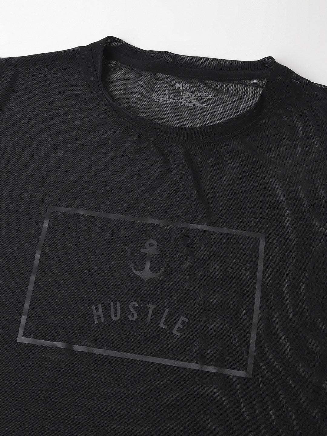 MKH Black Relaxed Fit Mesh Women Breathable T-Shirt