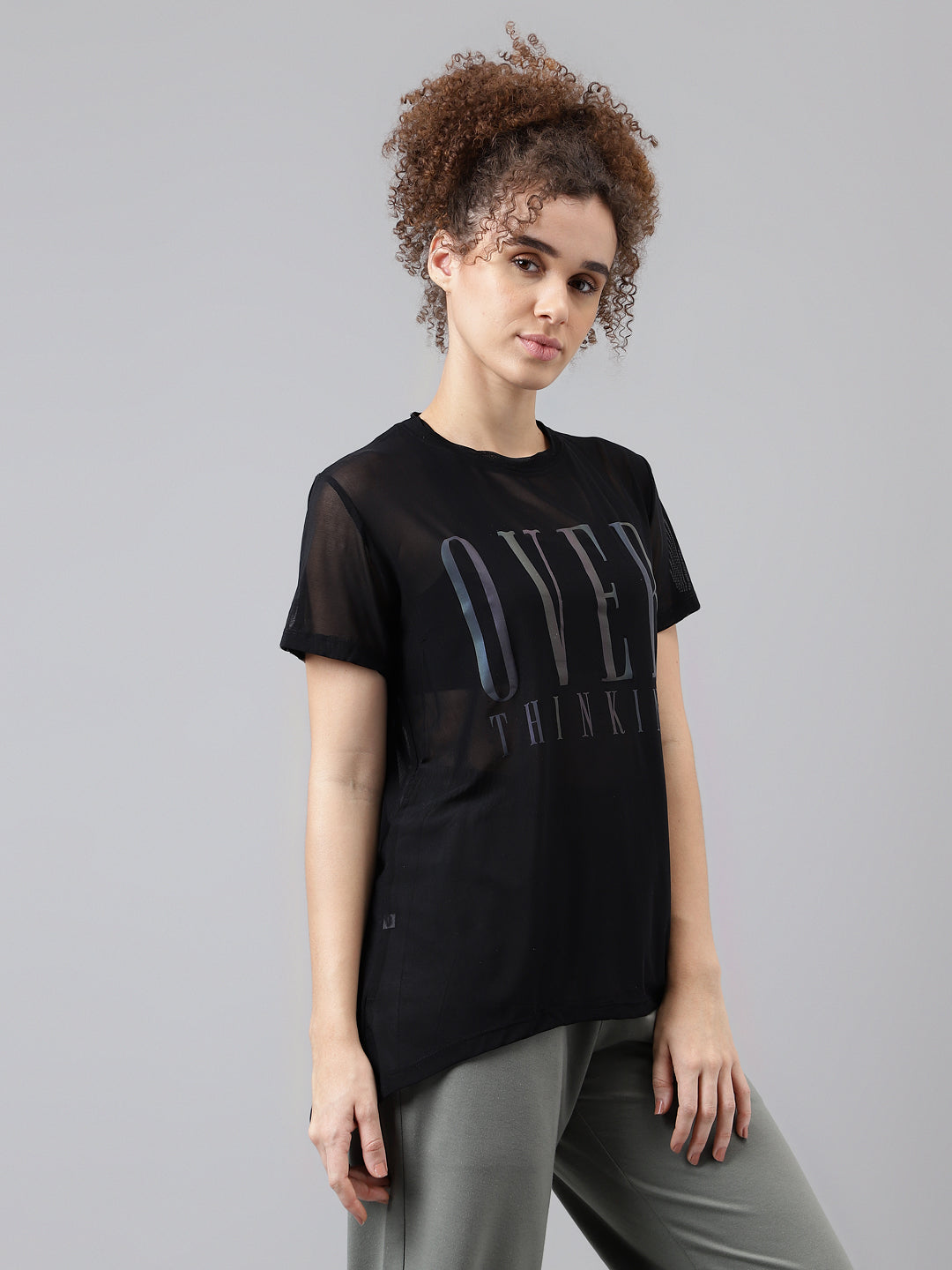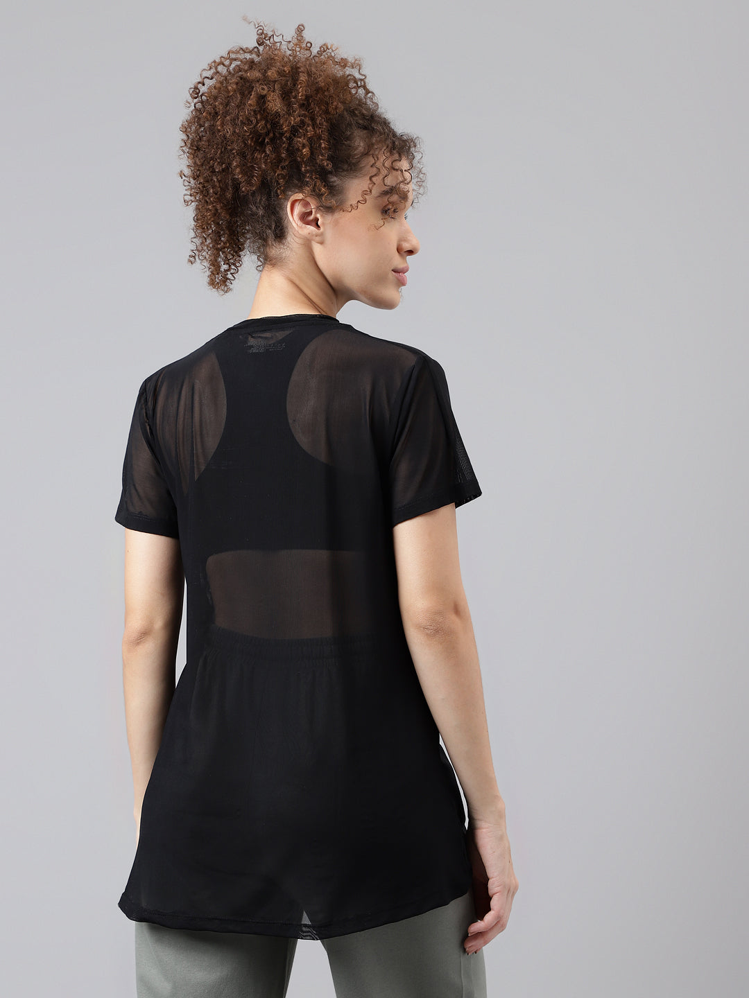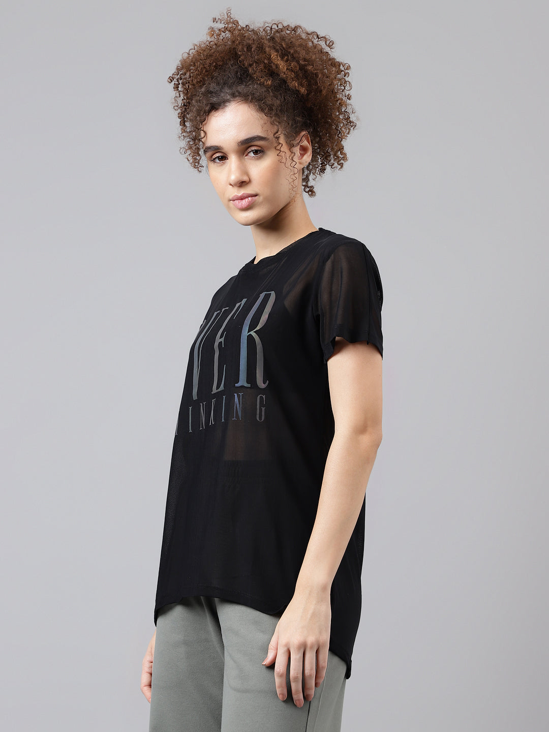 MKH Black Relaxed Fit Mesh Women Sporty Everyday T-Shirt