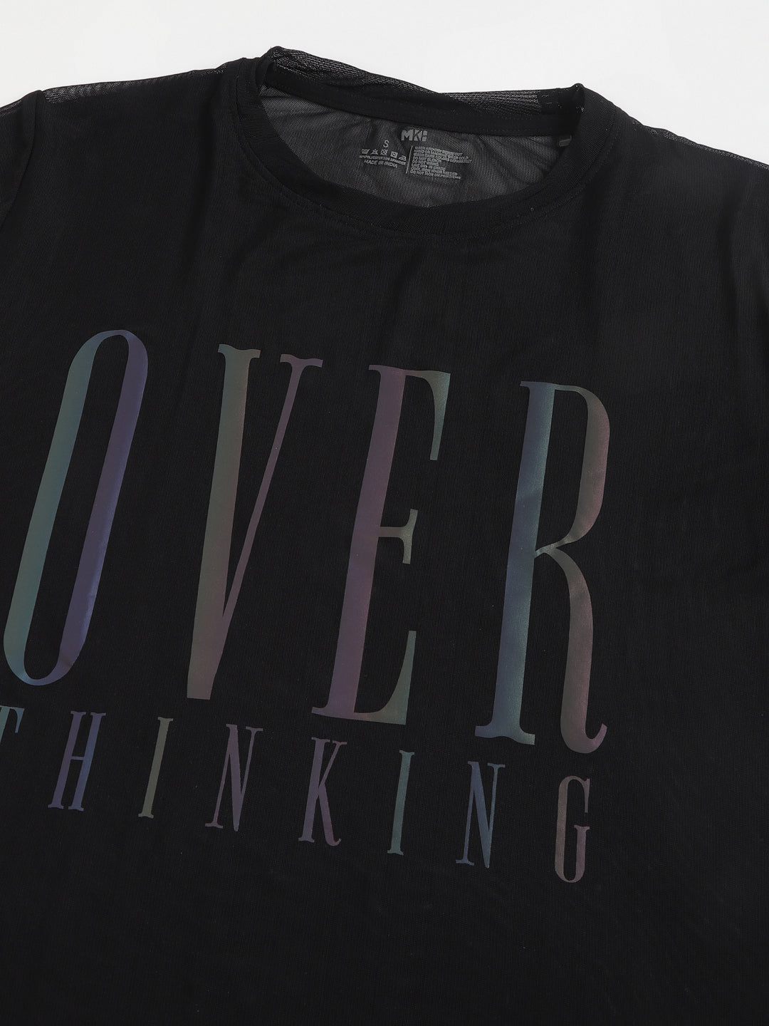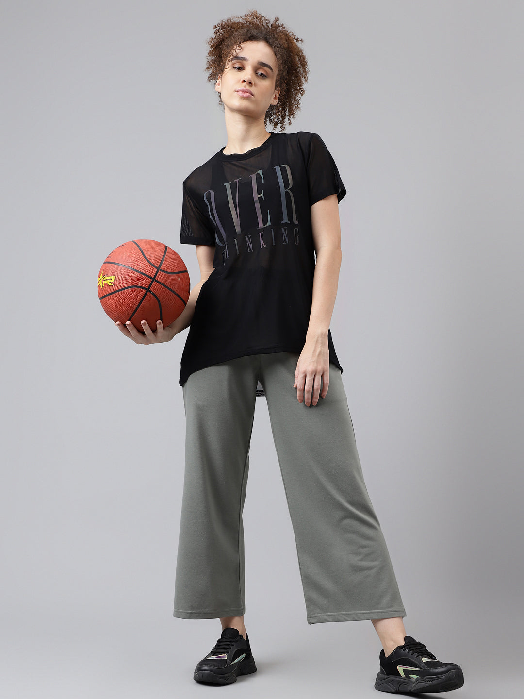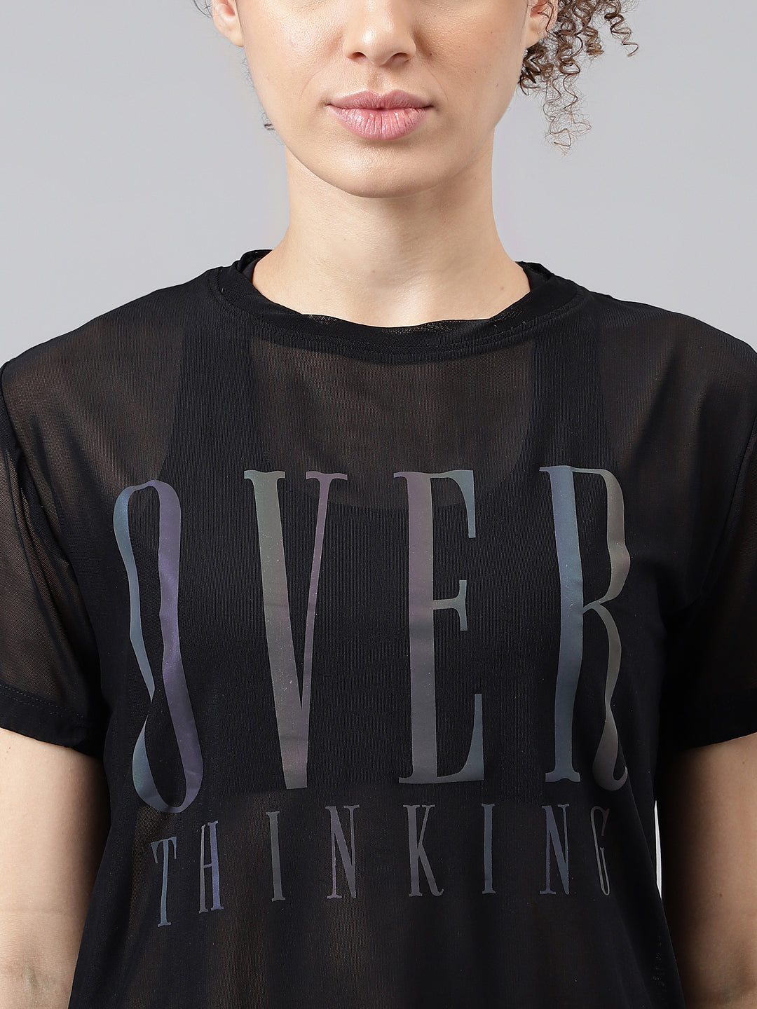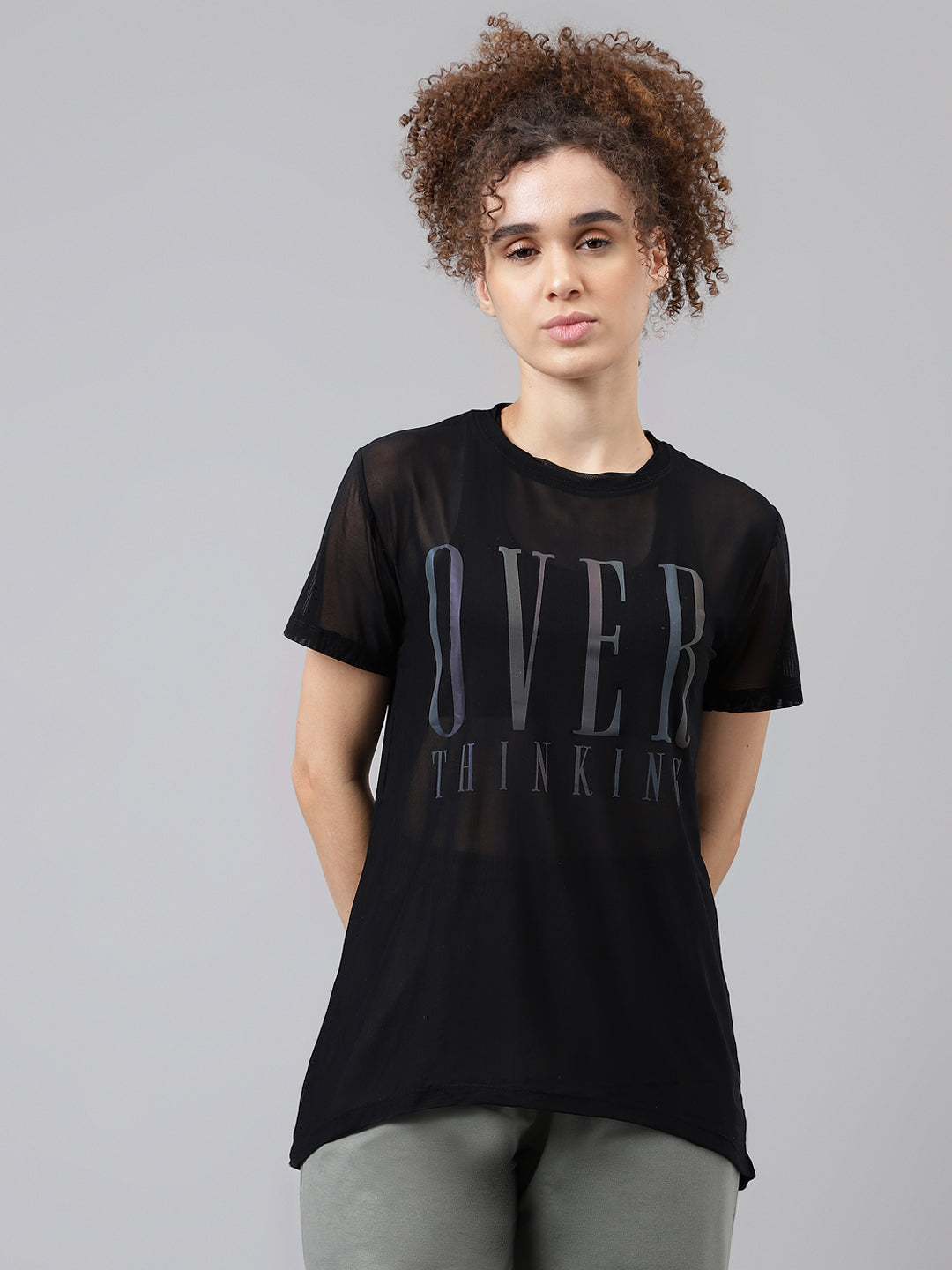 MKH Black Relaxed Fit Mesh Women Sporty Everyday T-Shirt