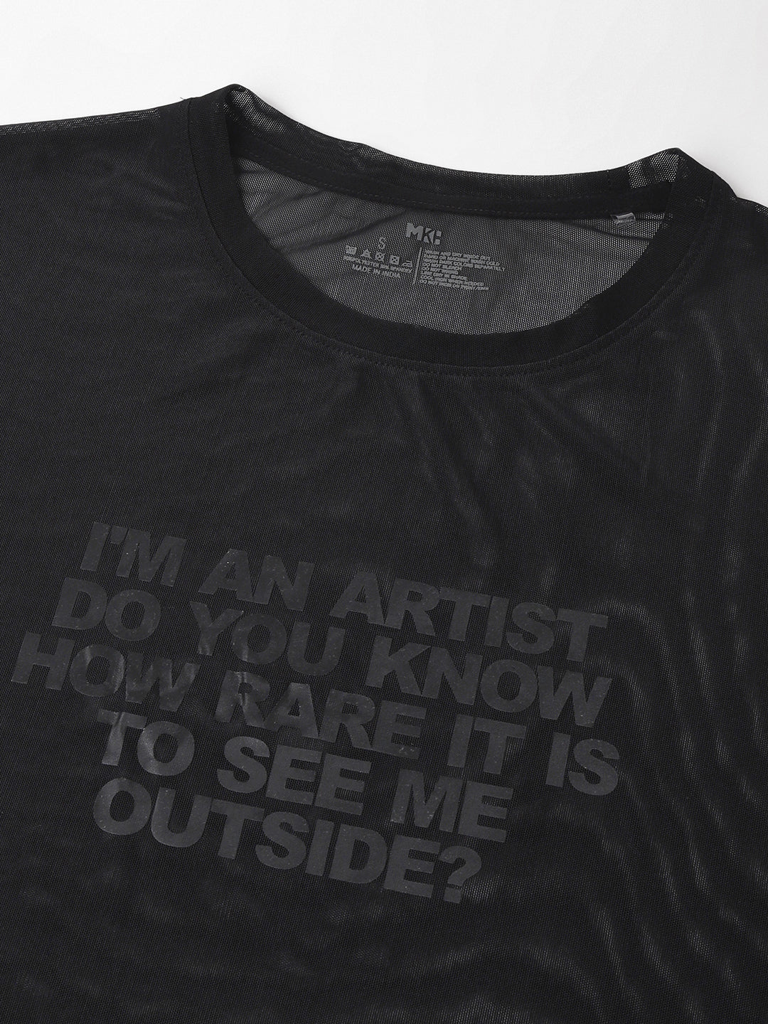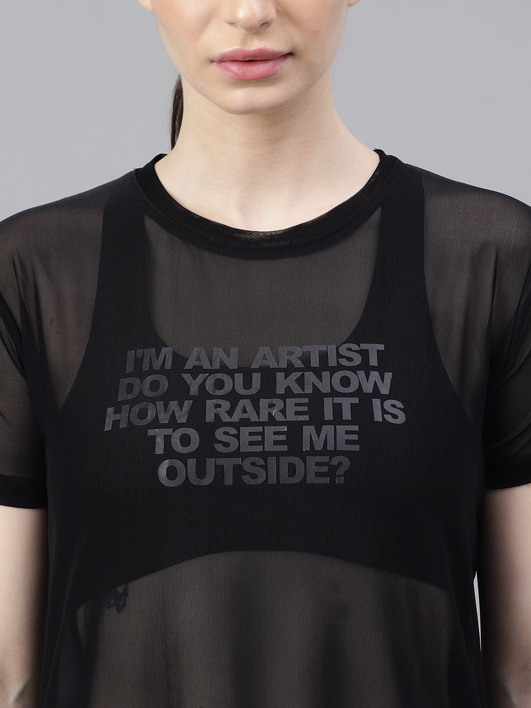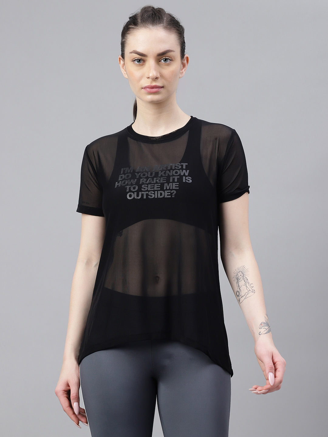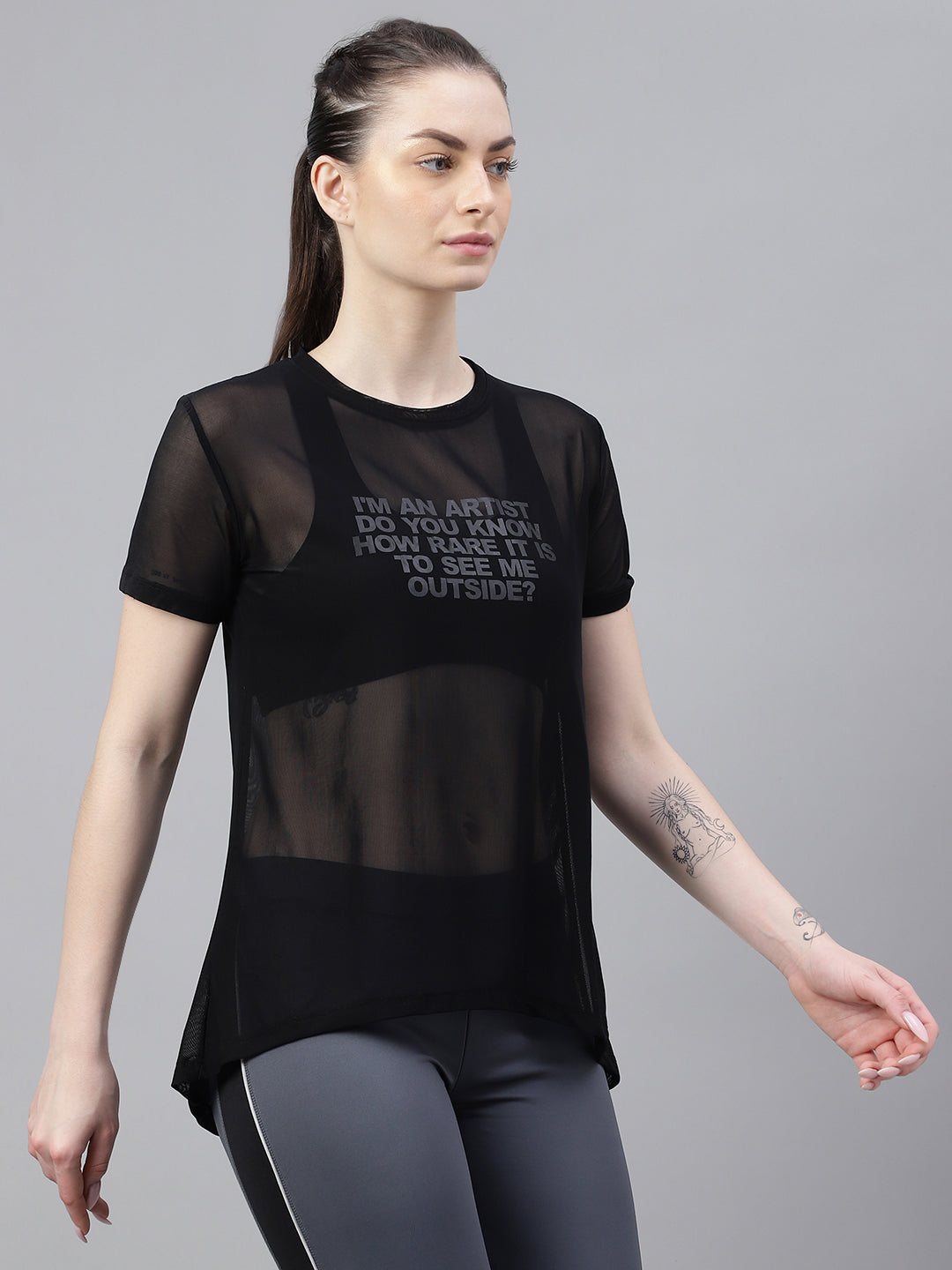 MKH Black Relaxed Fit Mesh T-Shirt Women Sporty Workout Style