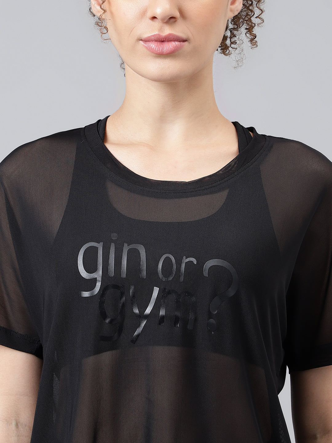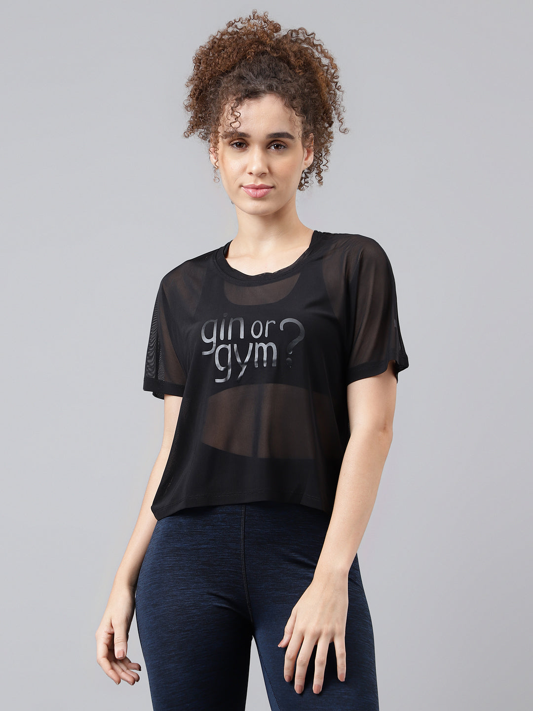 MKH Black Mesh Short Boxy Fit T Shirt Womens Fashion