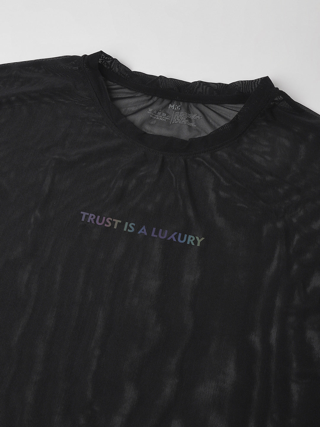 MKH Black Mesh T Shirt Womens Sporty Curved Hem
