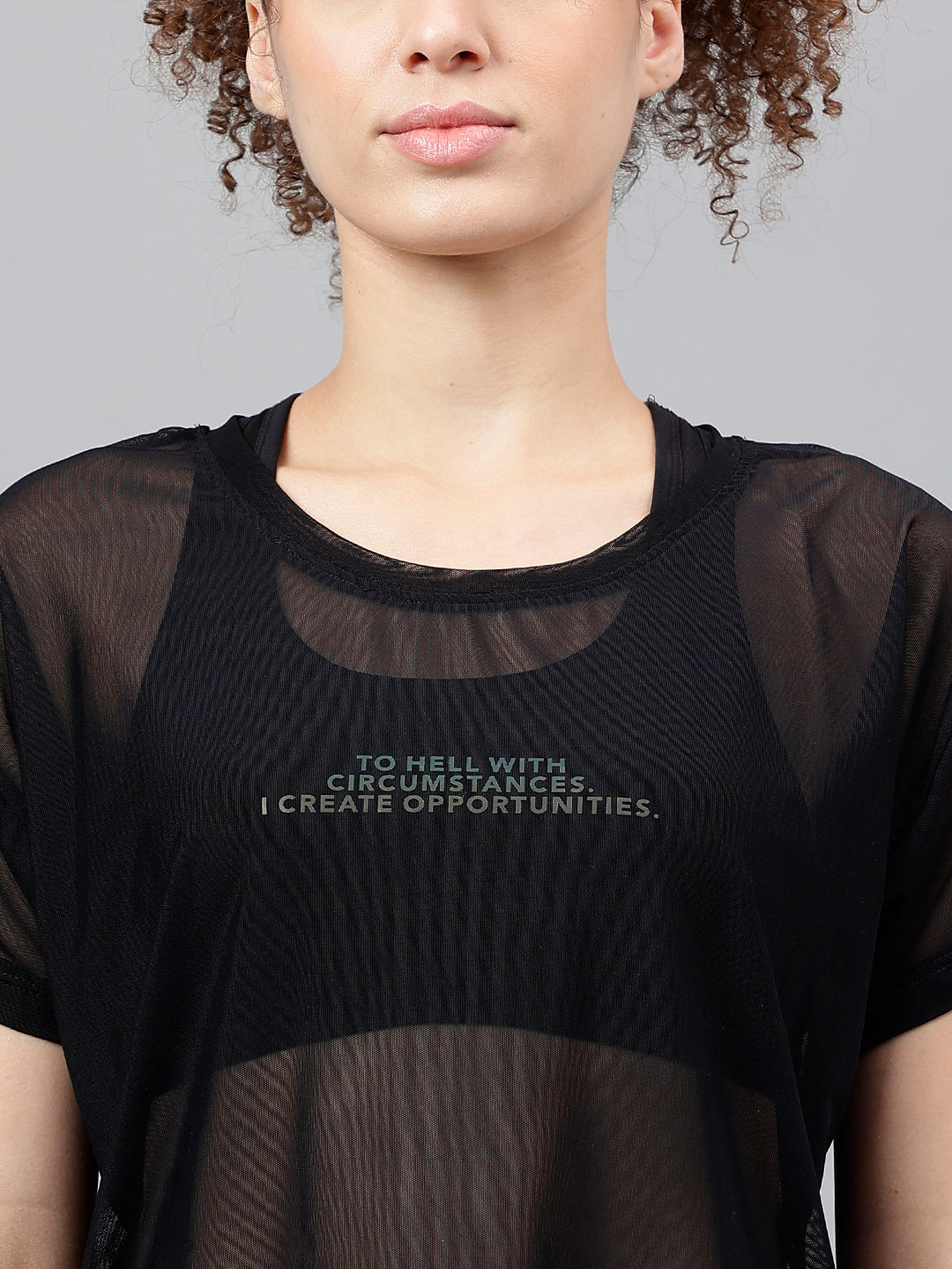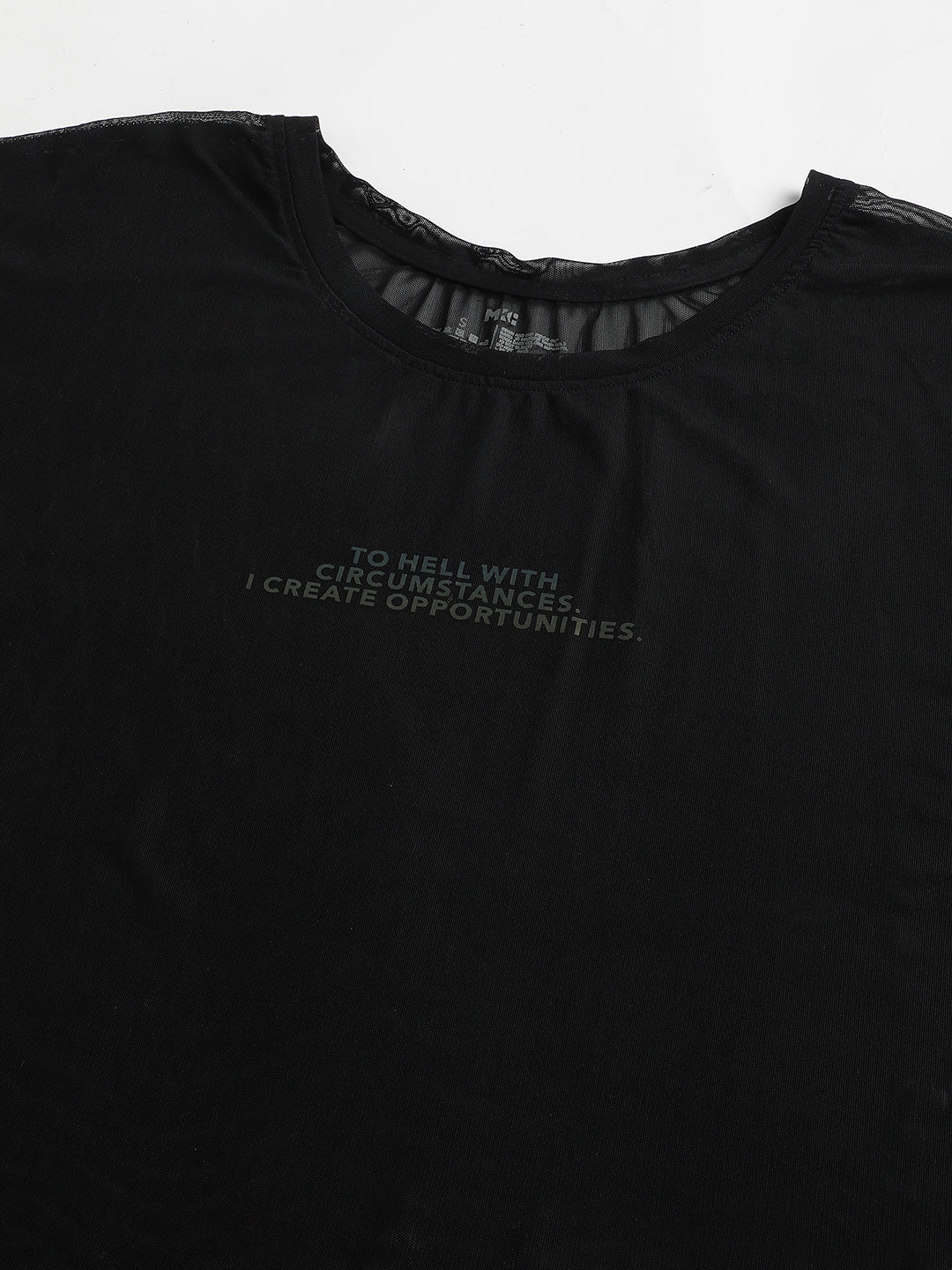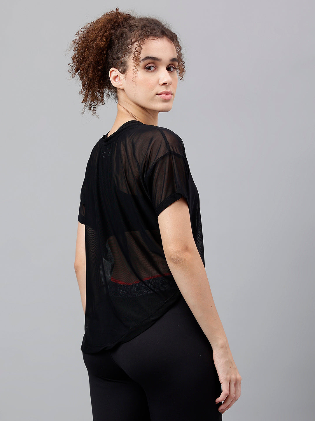 MKH Black See-Through Mesh Trendy Gymwear T-Shirt