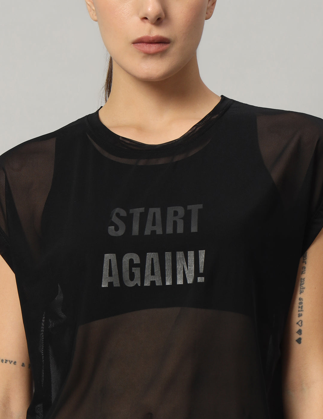 MKH Black Sheer Mesh T Shirt Womens Curved Hem Style