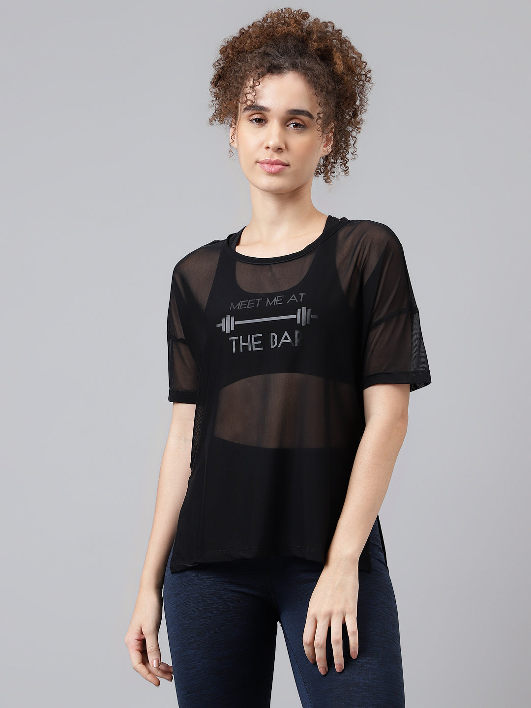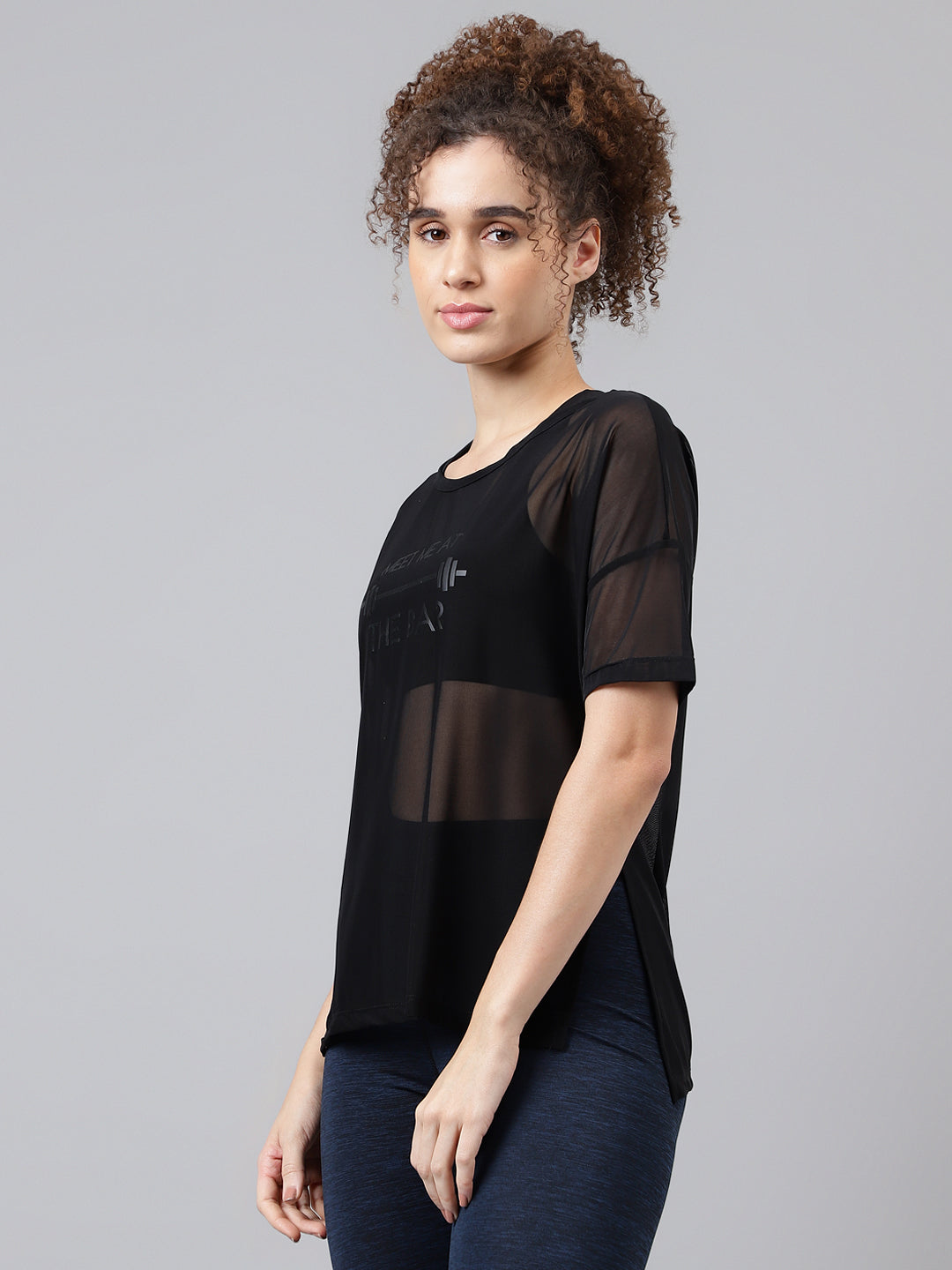 The MKH EnduraFlow Mesh Tee is a versatile training essential built for women who demand comfort and durability. Its relaxed fit and sheer mesh design maximize airflow, while side vents enhance cooling during high-intensity sessions. Perfectly blending performance with lifestyle, this mesh tee transitions effortlessly from the gym to casual streetwear. A go-to choice for women’s black workout tops.