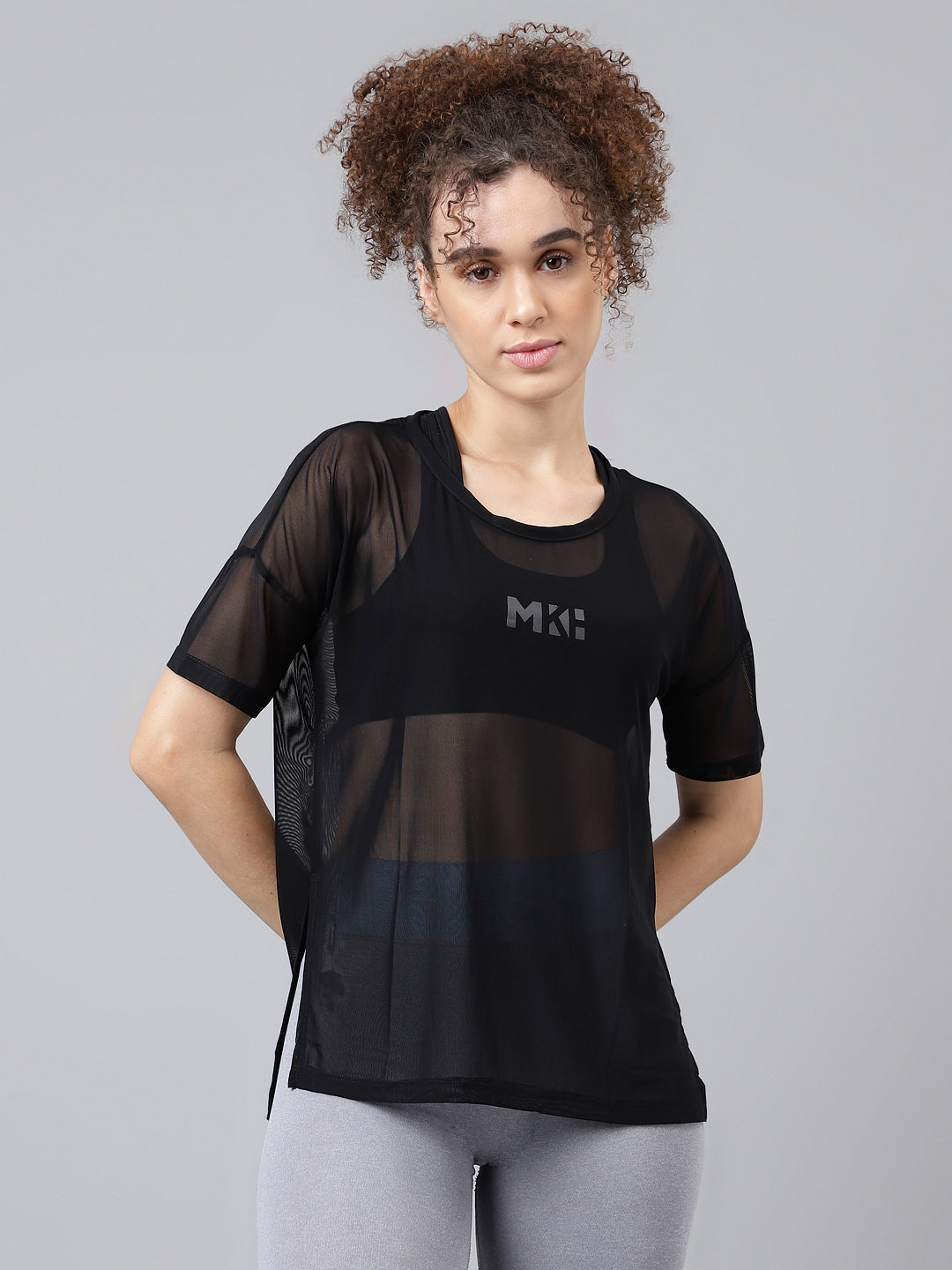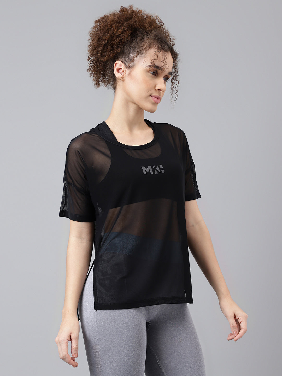 The MKH EnduraFlow Mesh Tee is a versatile training essential built for women who demand comfort and durability. Its relaxed fit and sheer mesh design maximize airflow, while side vents enhance cooling during high-intensity sessions. Perfectly blending performance with lifestyle, this mesh tee transitions effortlessly from the gym to casual streetwear. A go-to choice for women’s black workout tops.