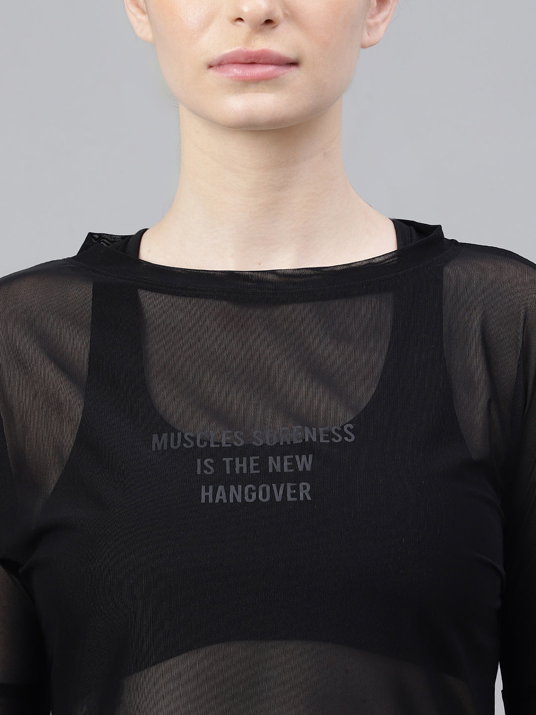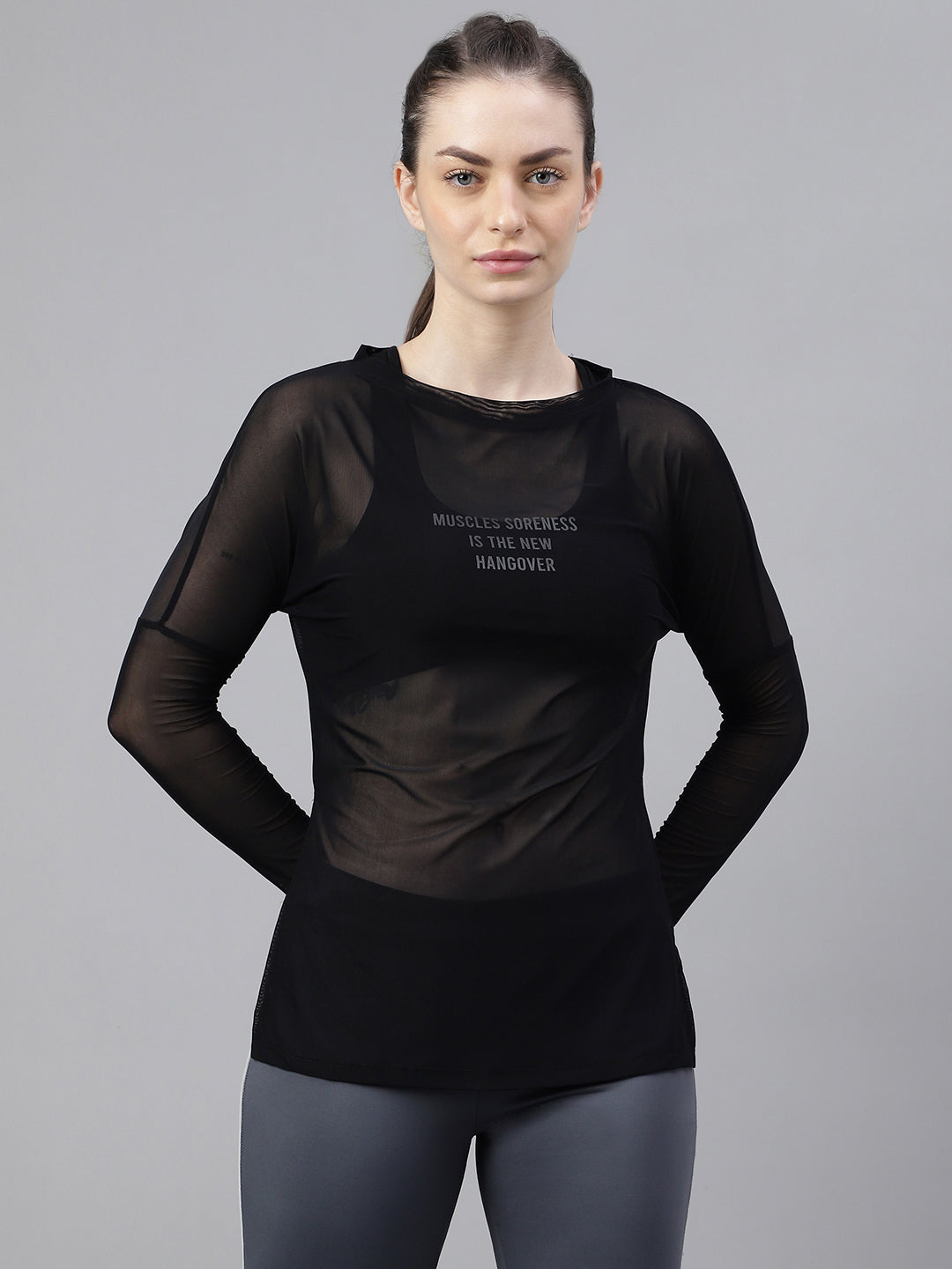 MKH Mesh Cover-Up Long Sleeve Top – Black