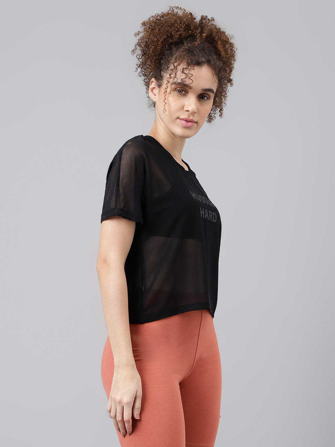 MKH Womens Black Mesh Short Length Sporty T Shirt