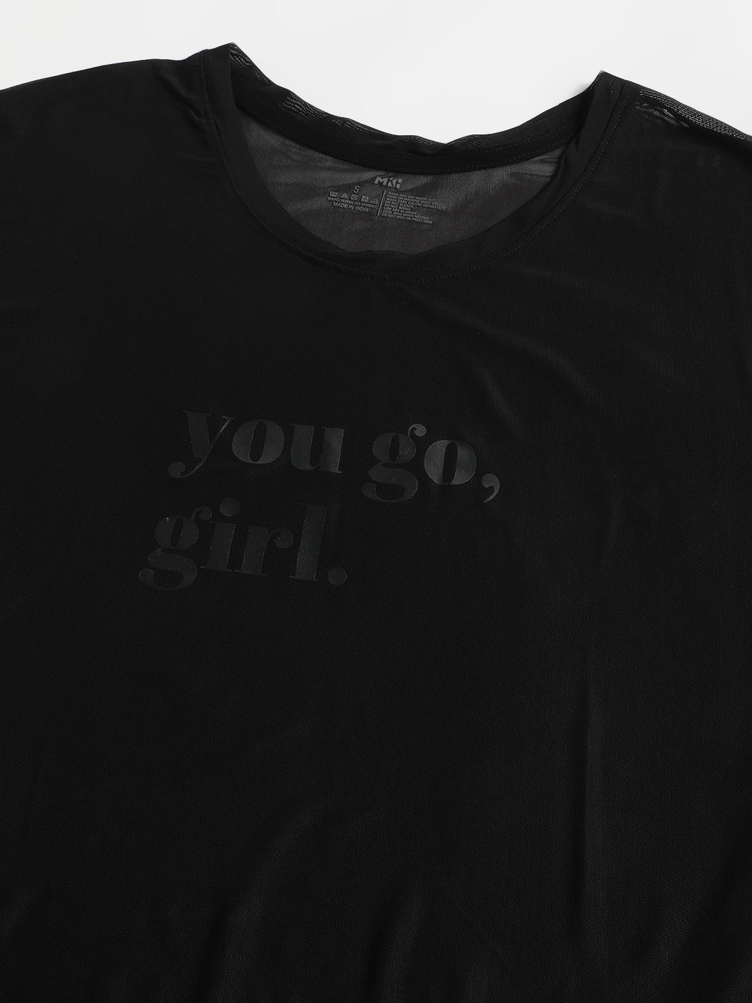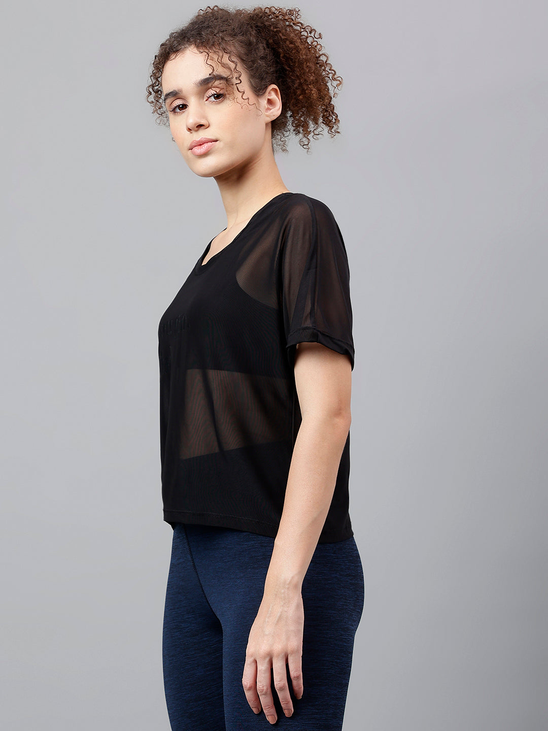 Lightweight. Sheer. Elevated. The MKH Mesh Crop-Fit T-Shirt is designed to keep you cool while you move. With its short length and boxy silhouette, this breathable mesh layer offers effortless style and ventilation during every workout. The relaxed crop fit makes it perfect for layering over your sports bra, pairing with high-waist leggings, or styling beyond the studio. Built for performance, made for everywhere.