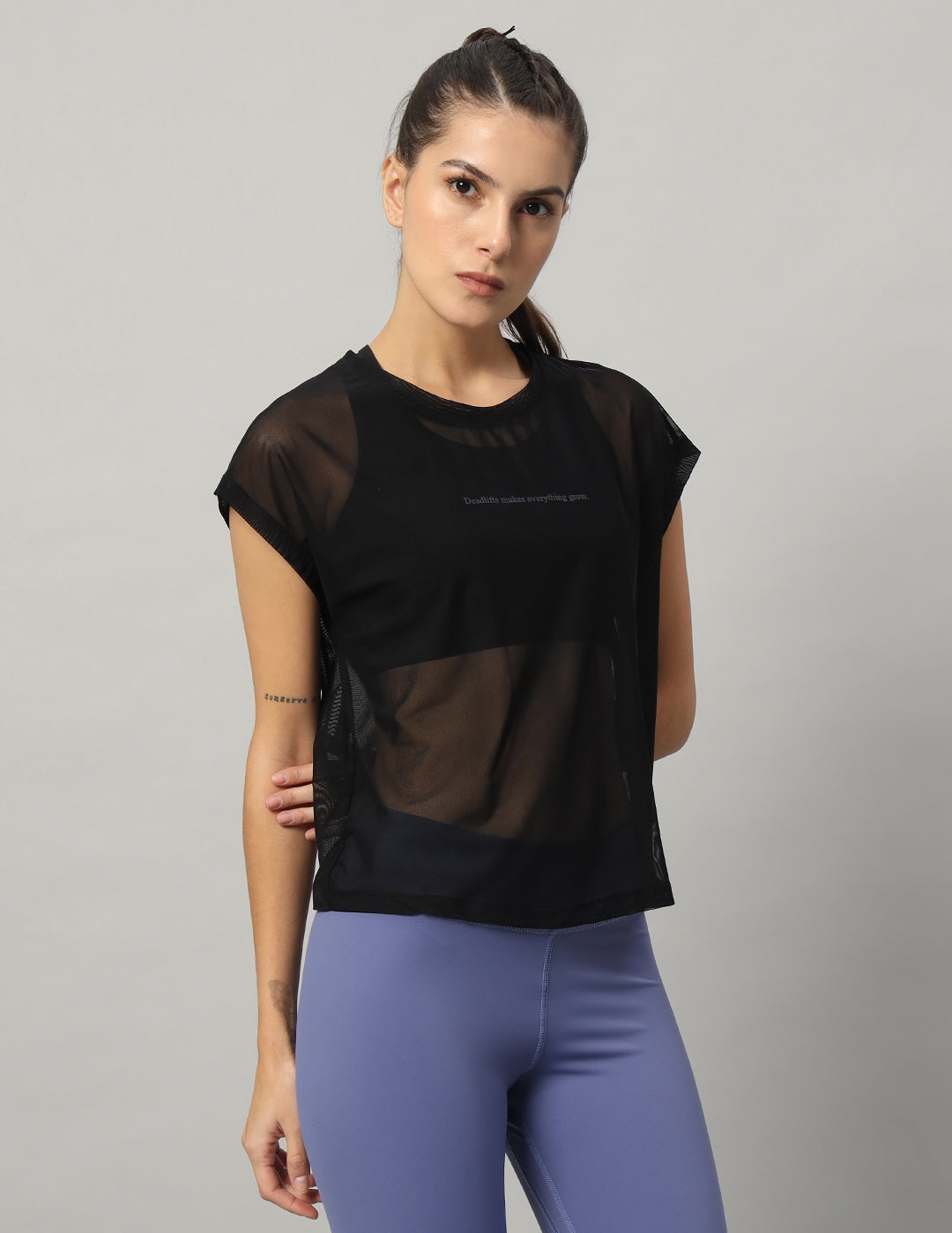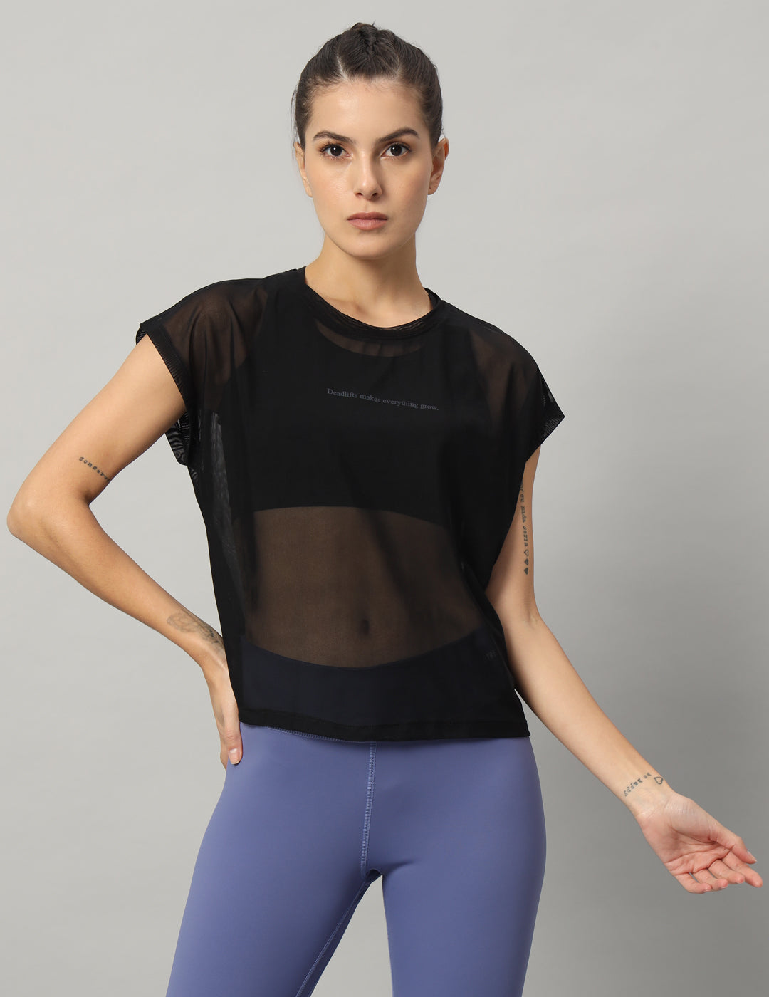 MKH Womens Sheer Mesh Short Fit T Shirt For Athleisure