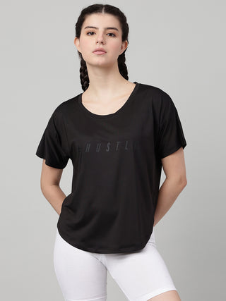 HUSTLE WOMEN BLACK DRI-FIT RELAXED FIT T-SHIRT
