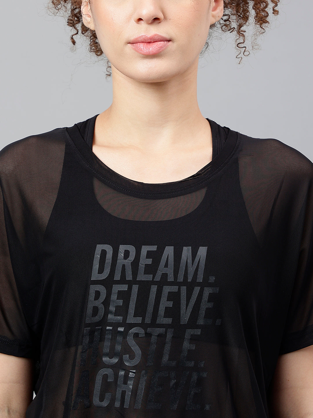 MKH Black Mesh Short Fit T Shirt Womens Athleisure