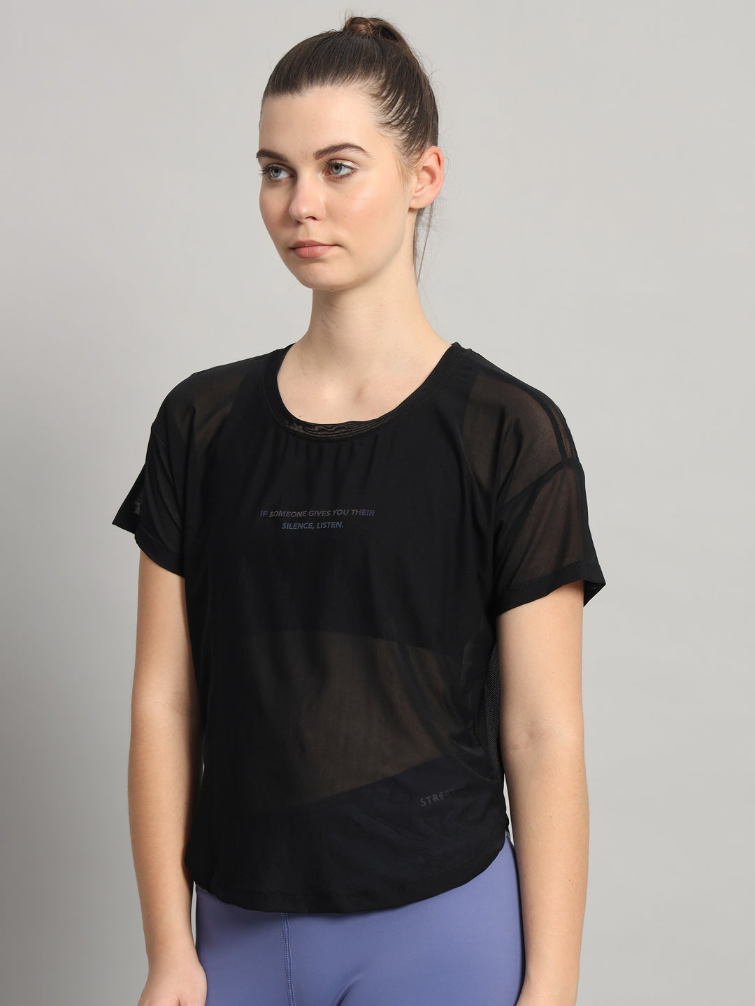 MKH Sheer Black Mesh Gym Breathable T-Shirt