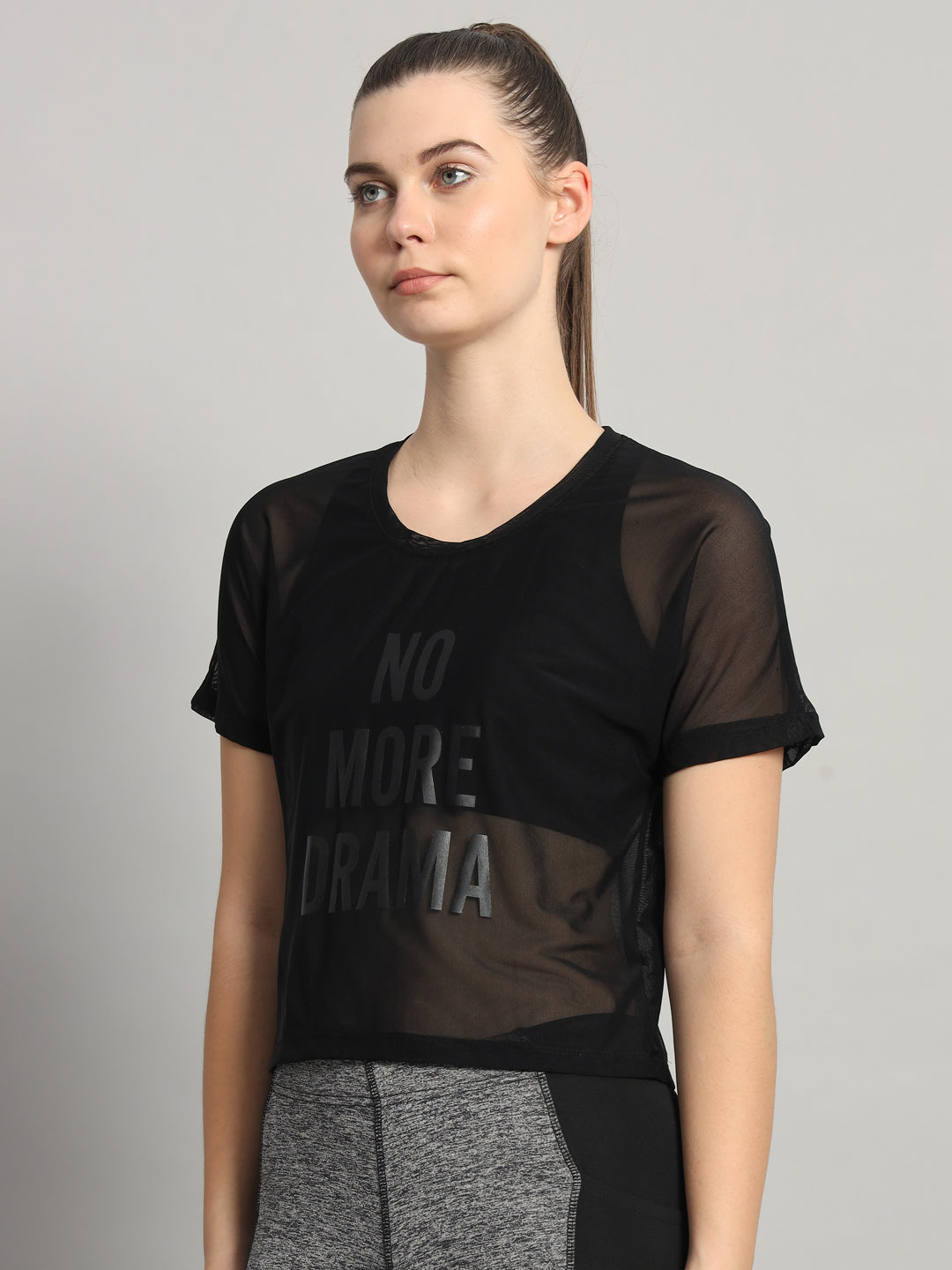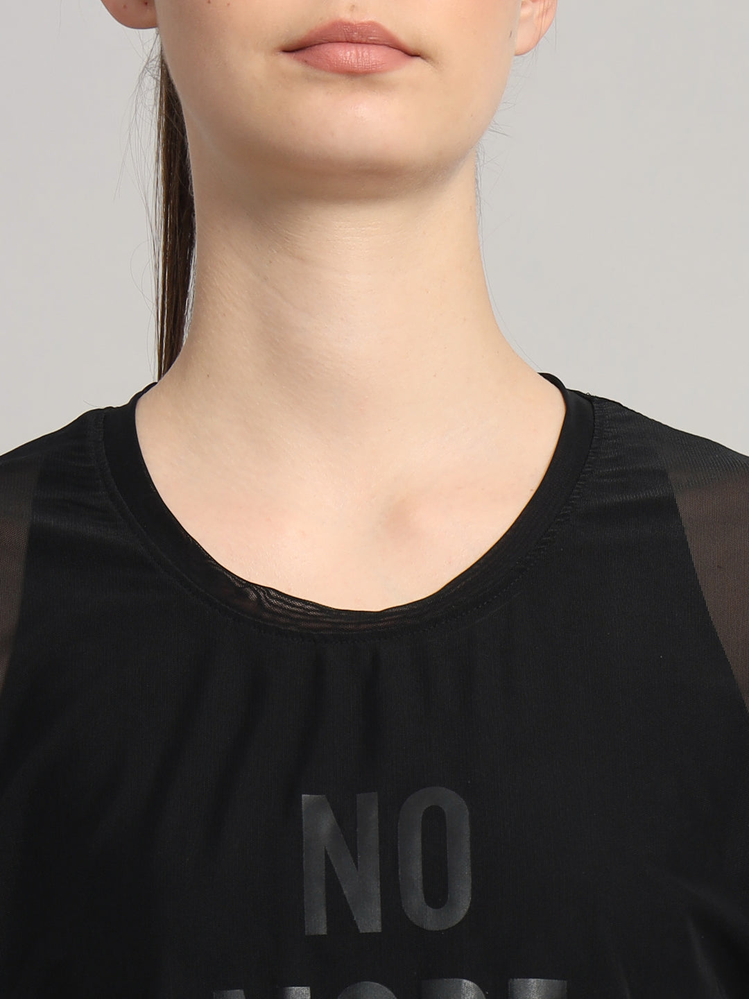 MKH Sheer Black Mesh Short Length T Shirt Womens Casual