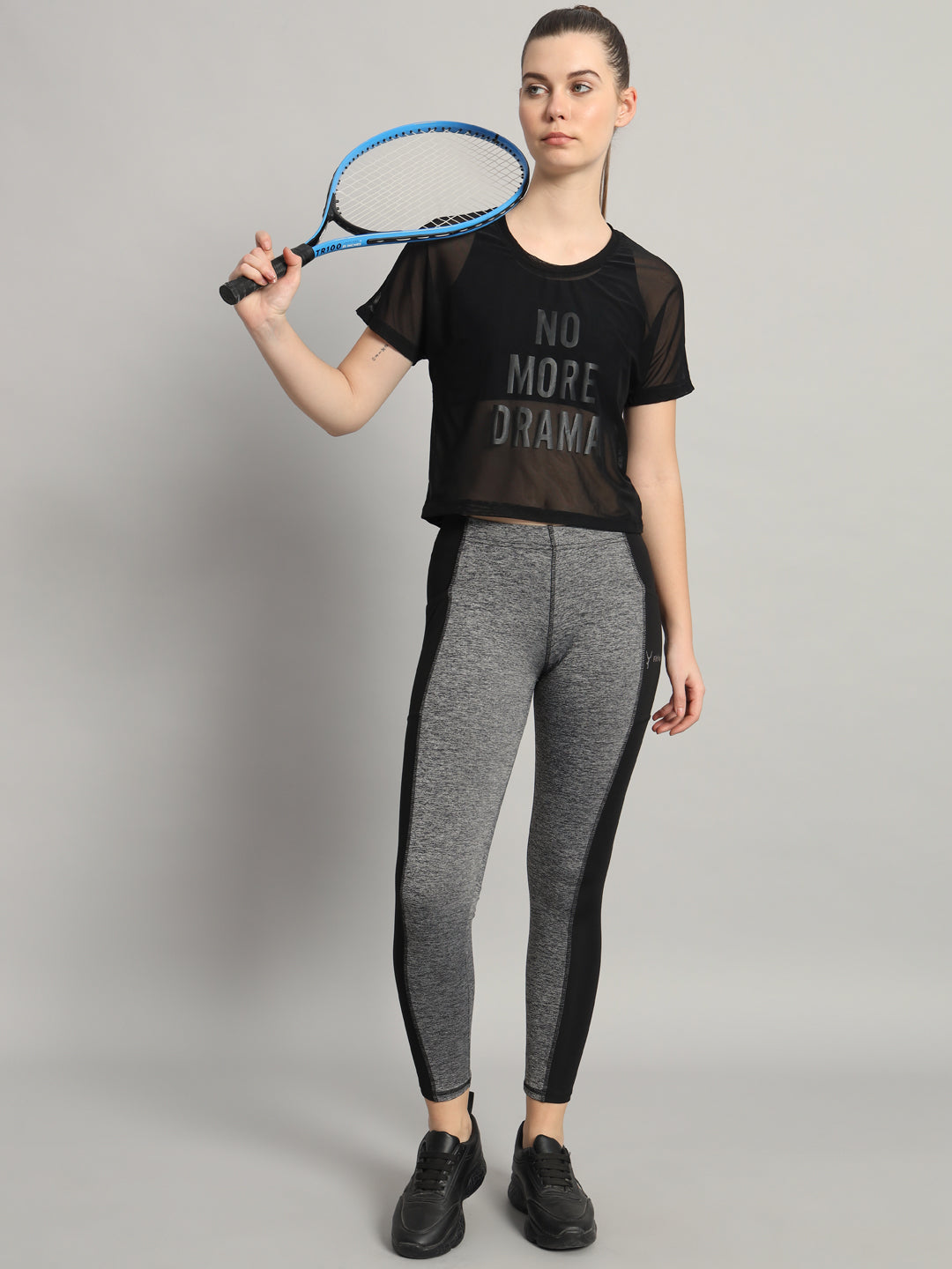 Lightweight. Sheer. Elevated. The MKH Mesh Crop-Fit T-Shirt is designed to keep you cool while you move. With its short length and boxy silhouette, this breathable mesh layer offers effortless style and ventilation during every workout. The relaxed crop fit makes it perfect for layering over your sports bra, pairing with high-waist leggings, or styling beyond the studio. Built for performance, made for everywhere.