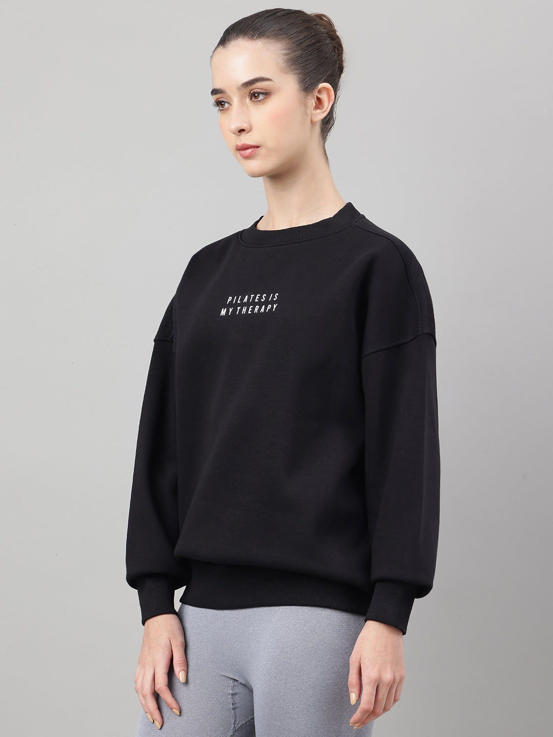 MKH Black Women Everyday Wear Cotton Fleece Sweatshirt