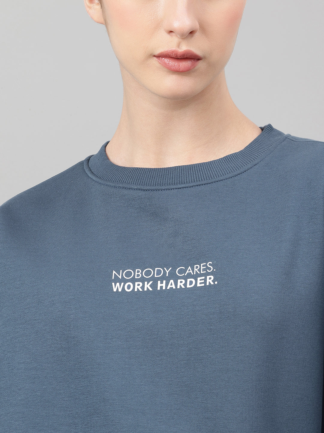 MKH Teal Blue Women Plush Feel Cotton Fleece Sweatshirt