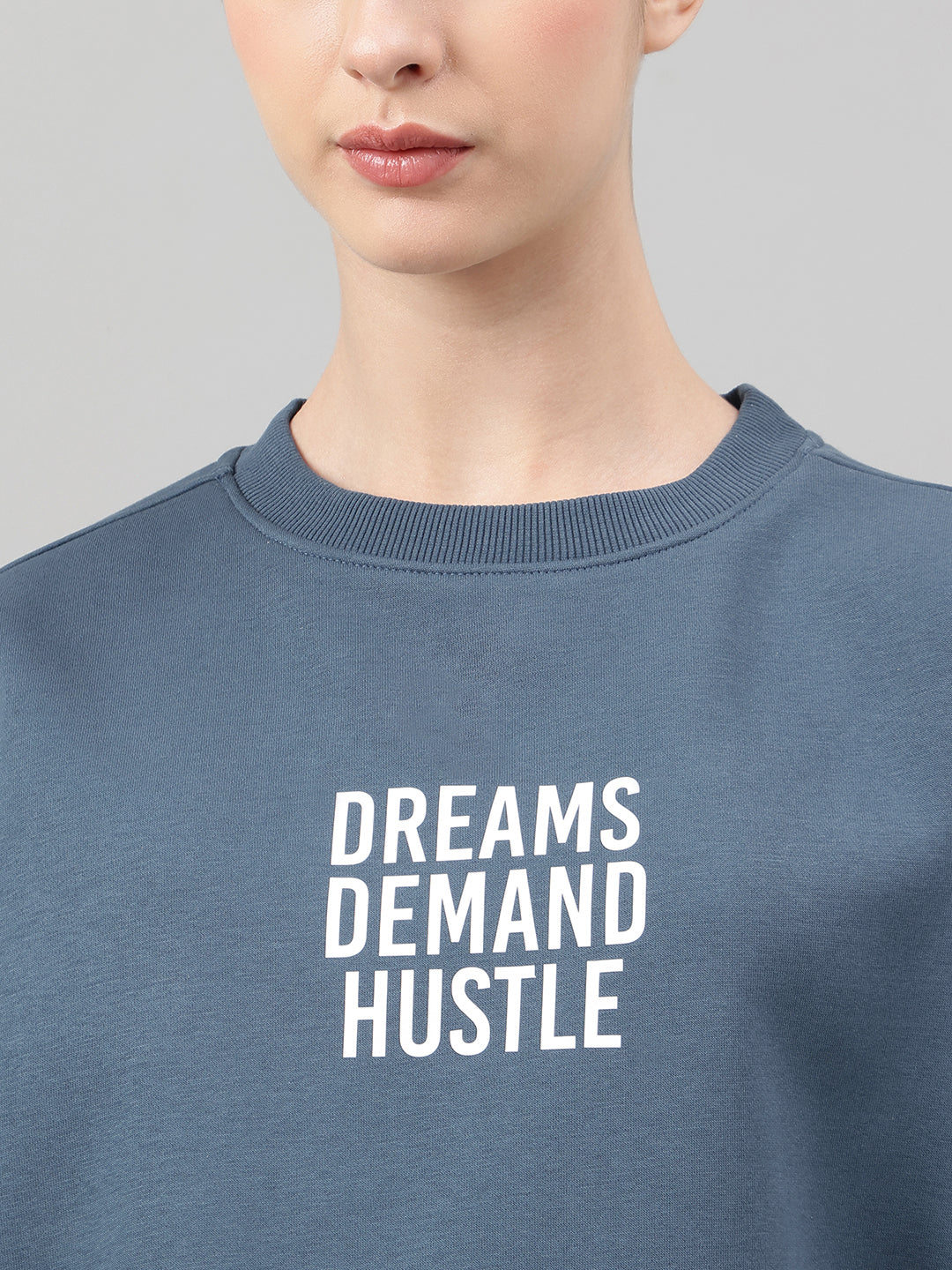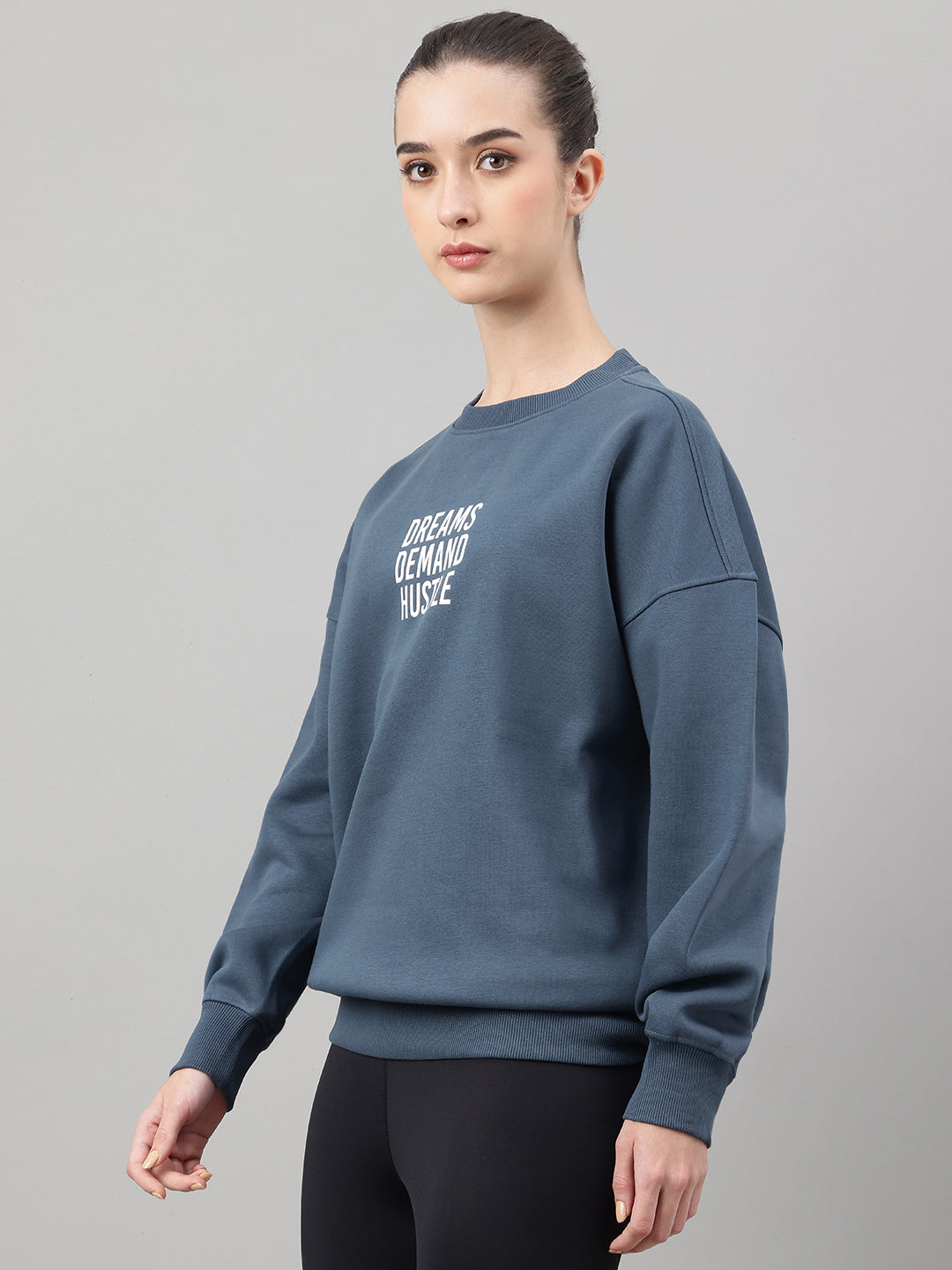 MKH Teal Blue Women Relaxed Drop Shoulder Fleece Sweatshirt