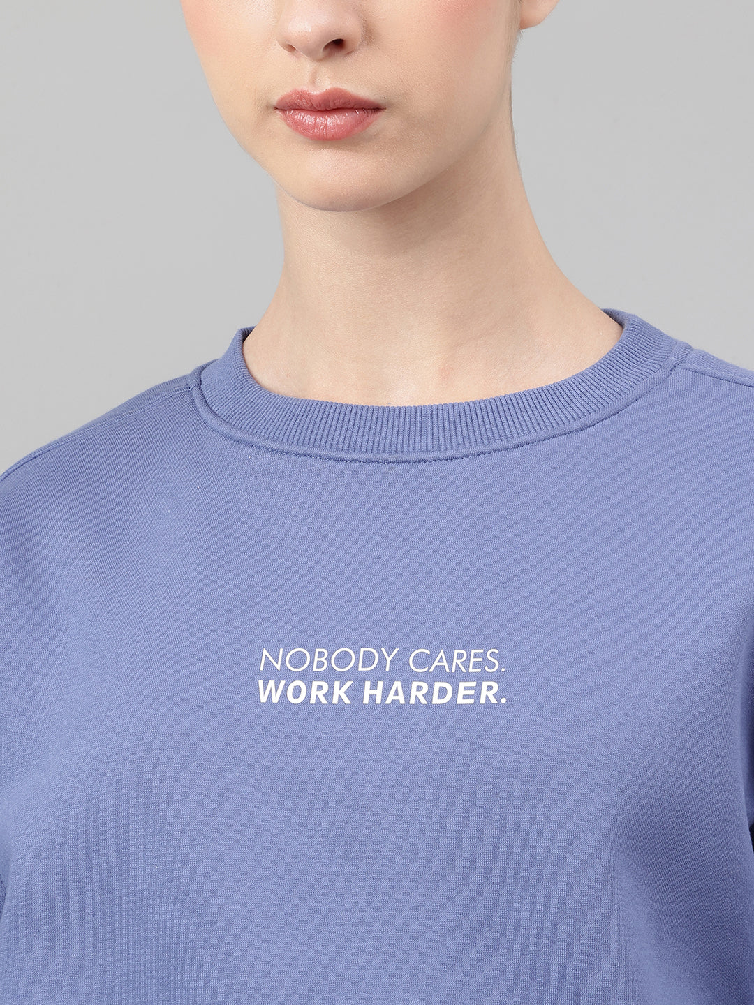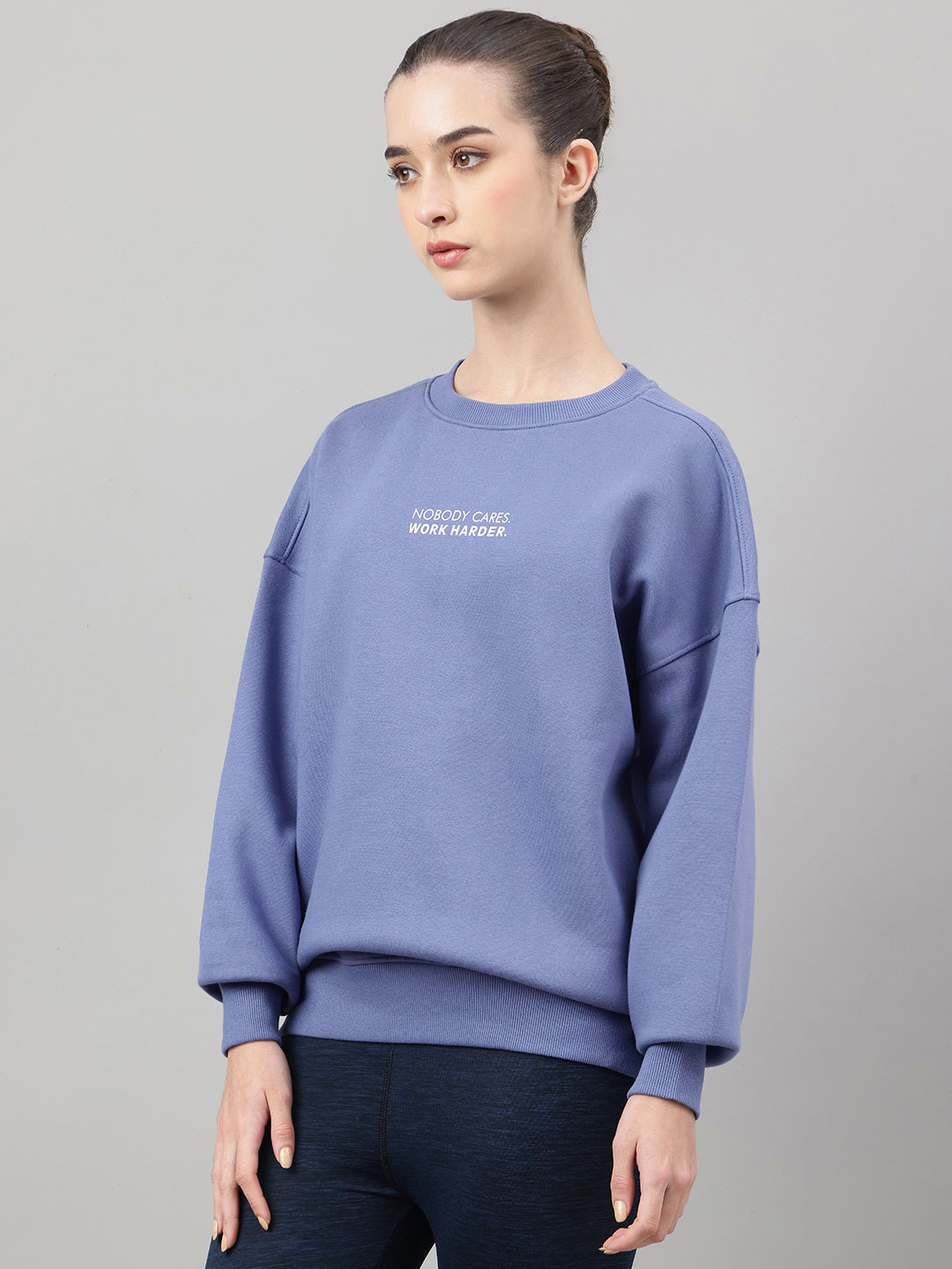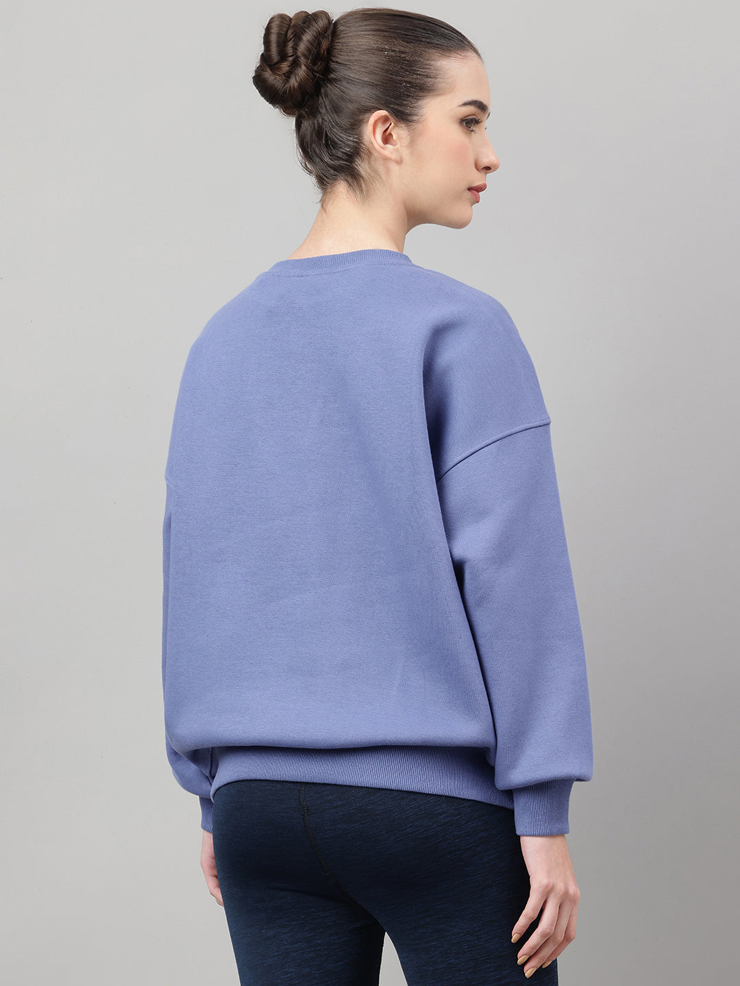 MKH Slate Blue Women Relaxed Weekend Cotton Fleece Sweatshirt