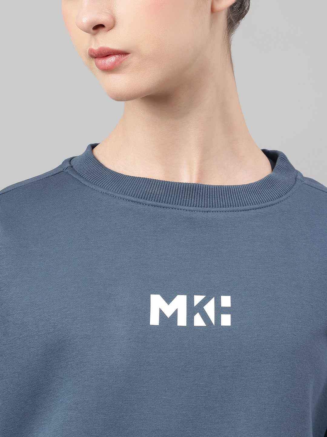 MKH Teal Blue Women Street Style Cotton Fleece Sweatshirt